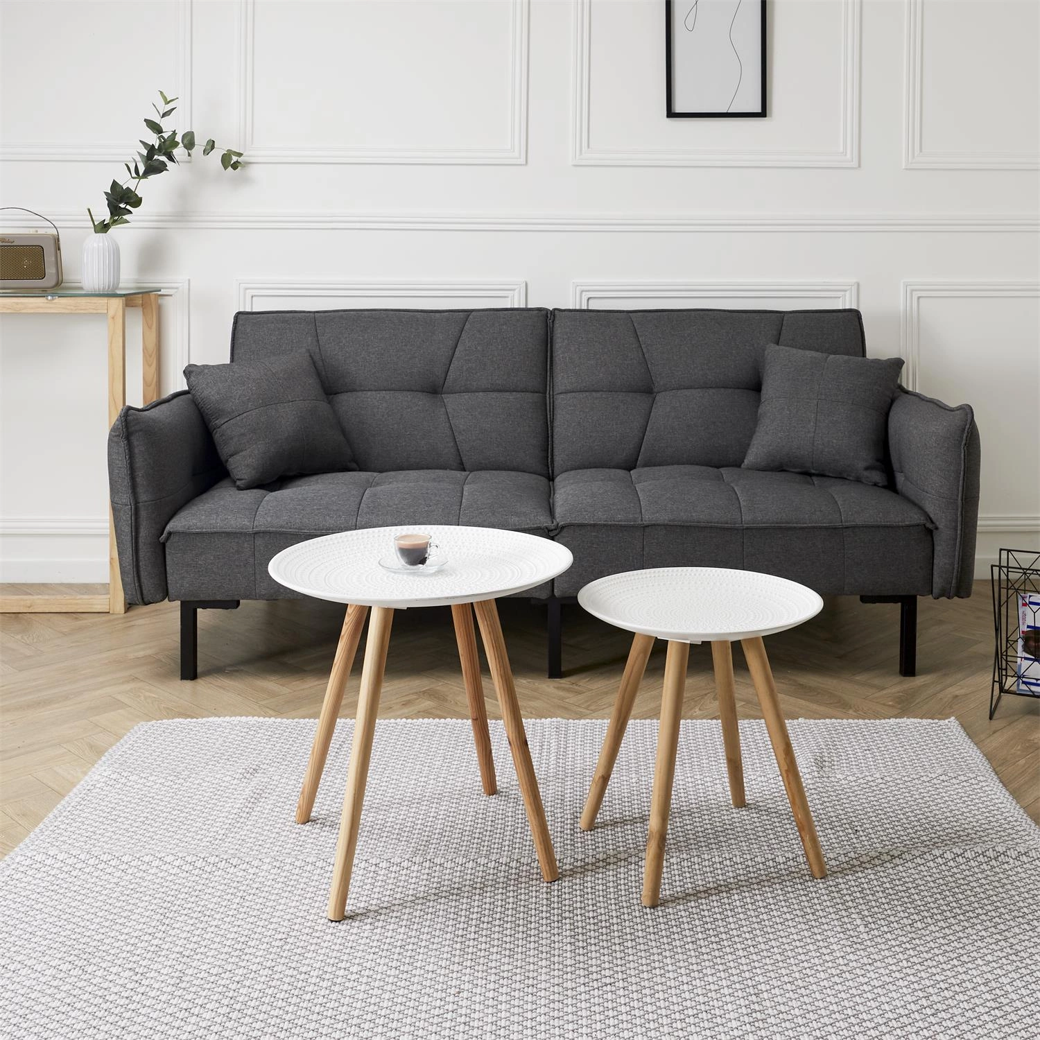 Představená sada se skládá ze dvou kulatých stolů různých velikostí, které se skvěle hodí do obývacího pokoje, kanceláře, kuchyně nebo jídelny. Jejich moderní design je inspirován skandinávským stylem, který se vyznačuje jednoduchostí, přirozeností a elegancí. Desky stolů jsou vyrobeny z MDF, zatímco nohy jsou ze surového dřeva, což zaručuje jejich odolnost a stabilitu. Každý stůl unese až 10 kg, takže na něj můžete umístit dekorace i praktické předměty denní potřeby.