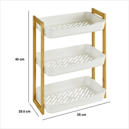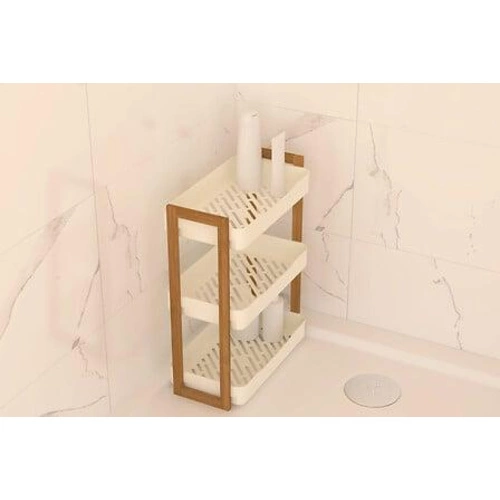 Zde představená police Naturéo je mimořádně funkčním a elegantním řešením pro uspořádání prostoru ve vaší koupelně. Skládá se ze tří úrovní, které poskytují dostatek úložného prostoru pro nejrůznější předměty. Je vyrobena z kombinace plastu a bambusu, takže je nejen odolná, ale také estetická. Bílé barevné provedení podtrhuje jeho minimalistický a zároveň moderní charakter.