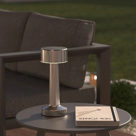 Stříbrná noční lampička Halto okouzlí minimalistickým tvarem, který dokonale zapadne do moderních zahradních, terasových i balkonových aranžmá. Pevná kovová konstrukce a nízká hmotnost (0,27 kg) zajišťují, že lampa je snadno přenosná – můžete ji umístit tam, kde je světlo právě nejvíce potřeba. Integrovaný akumulátor umožňuje používání lampy bez kabelů a nabíjení je rychlé a pohodlné.