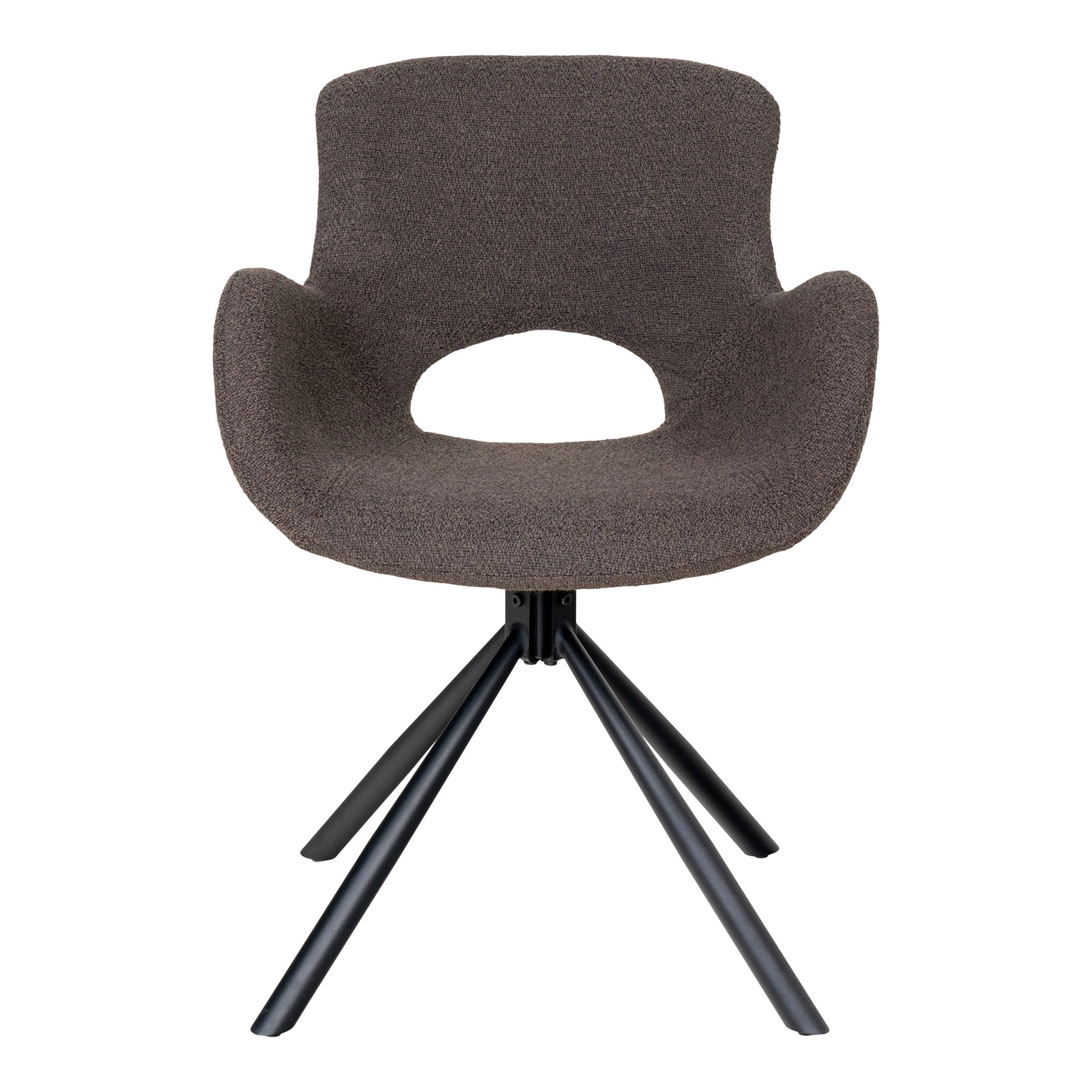 Jídelní židle Amorim od značky Intesi spojuje mimořádné pohodlí s oblíbeným loftovým stylem. Je čalouněná měkkou látkou boucle v elegantním hnědém odstínu, která vyniká otočnou funkcí a pohodlnými područkami pro maximální komfort při každém jídle nebo setkání. Stabilní černá ocelová podnož dodává industriální charakter a zaručuje dlouhou životnost.