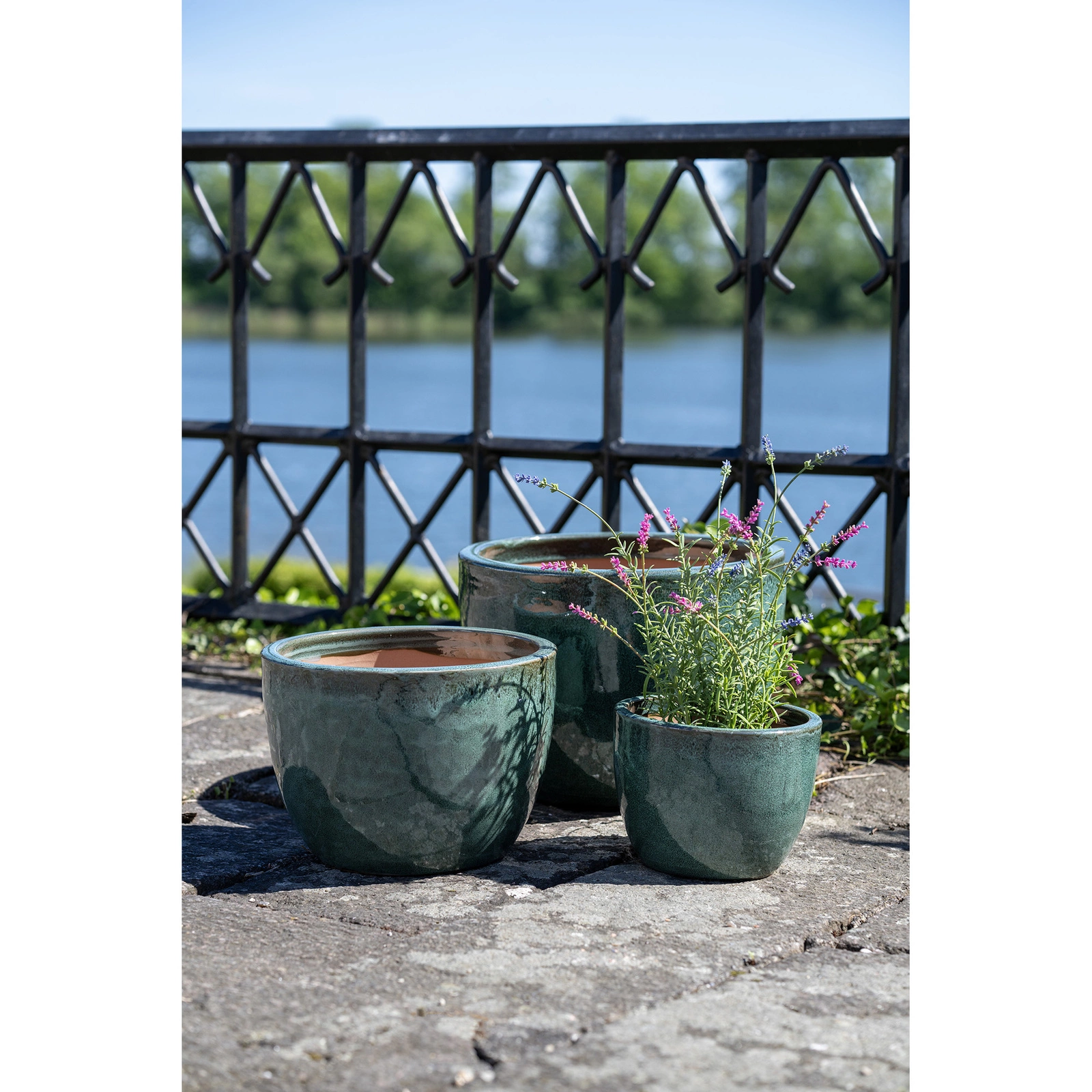 Sada 3 květináčů Burnley od značky Intesi je ideálním řešením pro ty, kteří chtějí vnést do svého domova nebo na balkon moderní prvek v přírodním stylu. Kulaté květináče z kameniny v hluboké zelené barvě skvěle poslouží jako designové květináče do obývacího pokoje, ložnice, jídelny i na balkon. Největší z nich má výšku 28 cm a šířku 38 cm, což umožňuje snadné uspořádání větších rostlin nebo působivých květinových aranžmá.