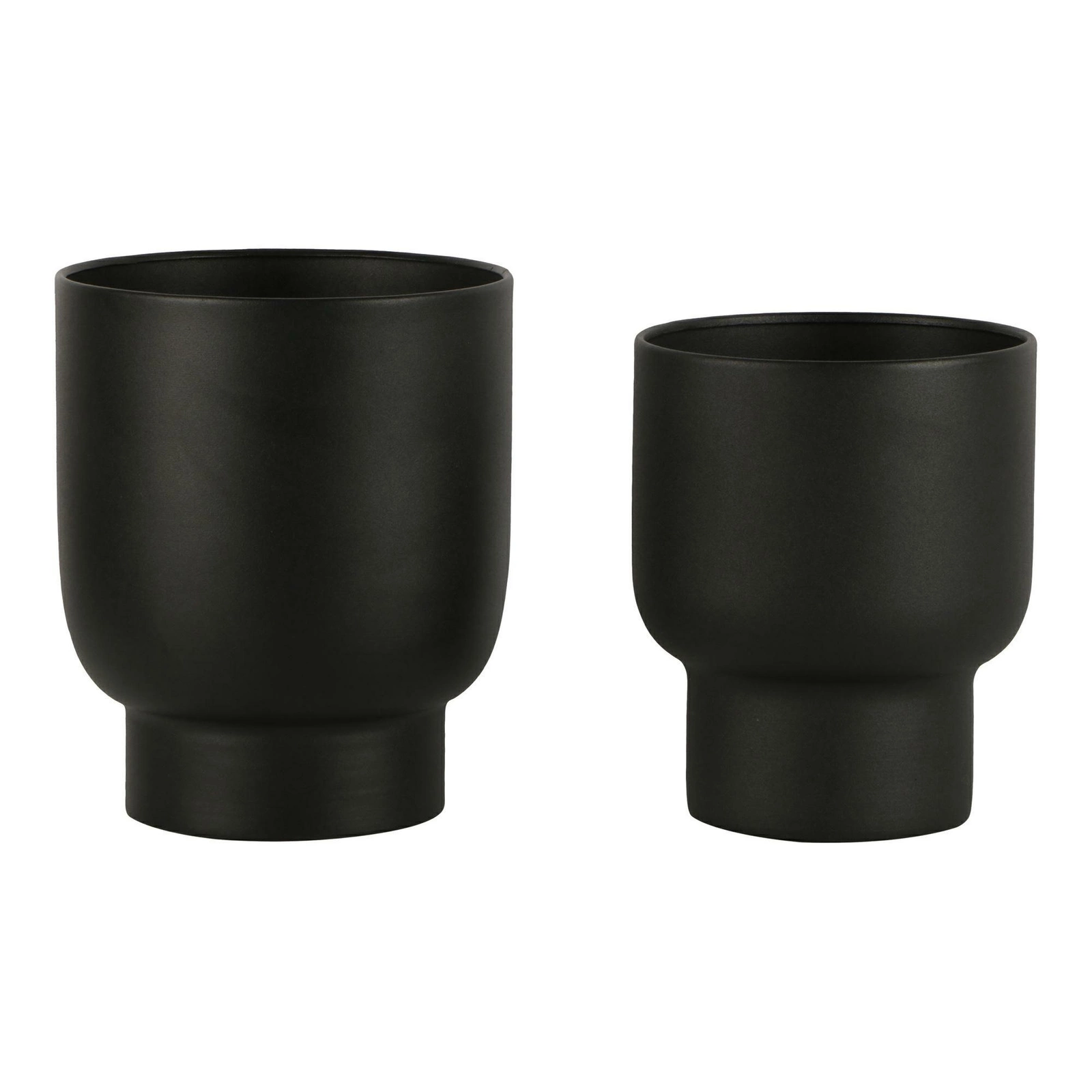 Sada 2 moderních černých kovových květináčů Fulda dekorativních do obýváku a na terasu