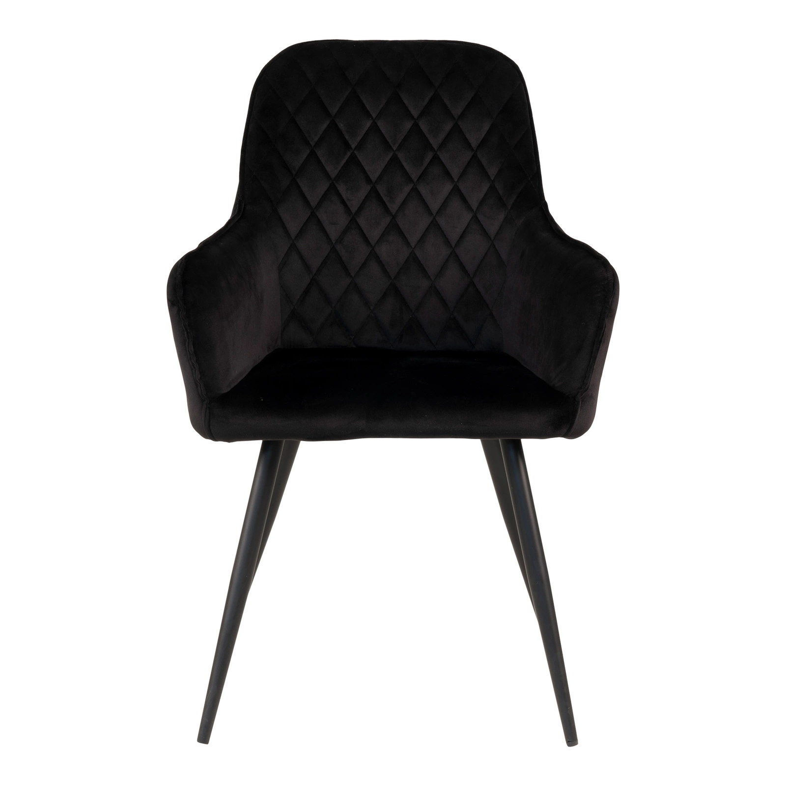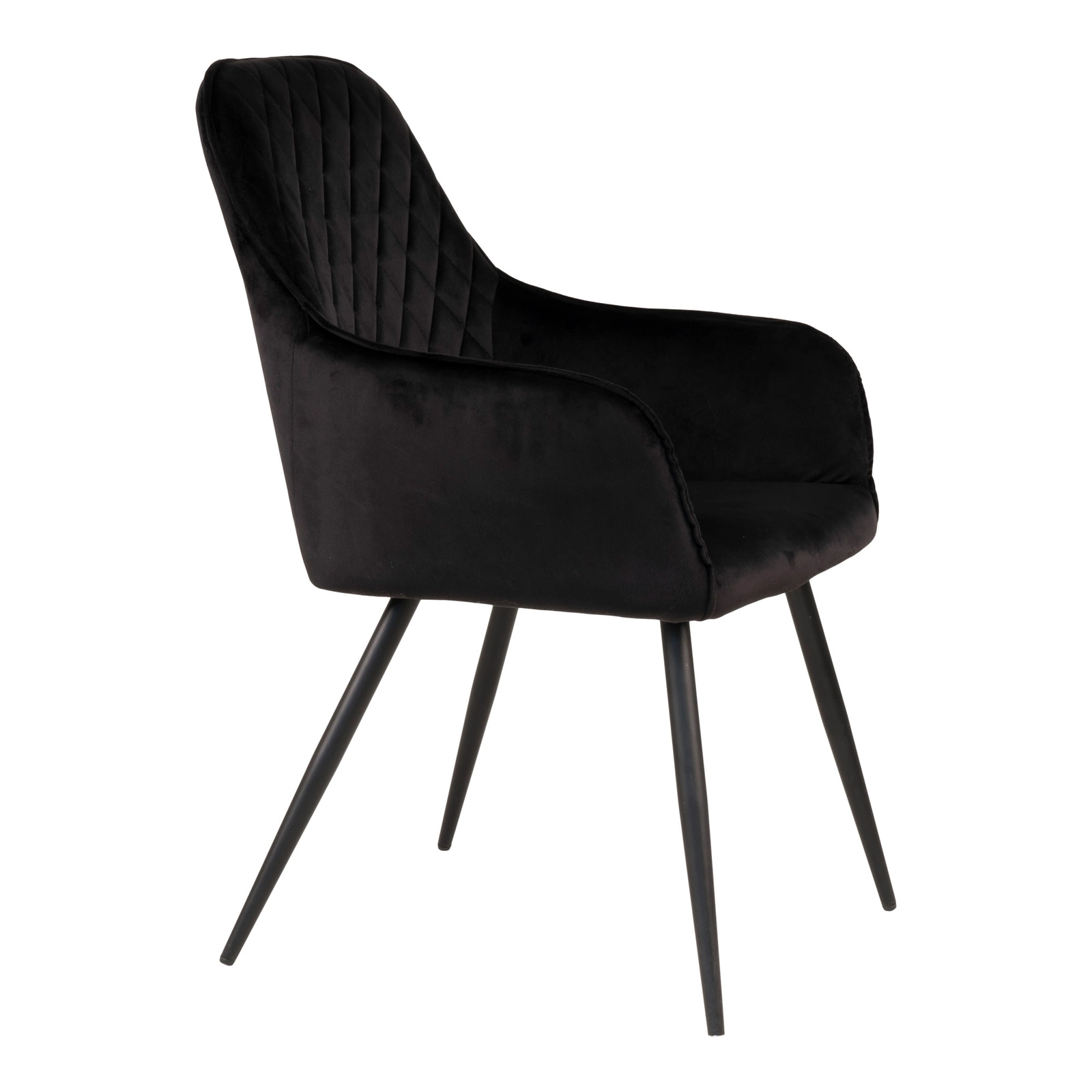 Židle Harbo od značky Intesi je moderní černá čalouněná židle, která spojuje pohodlí sametového veluru, stabilitu ocelové konstrukce a komfort područek. Díky ergonomicky tvarovanému sedáku o šířce 57 cm, vysokému opěradlu a štíhlým černým nohám je tento model ideální volbou do jídelny, obýváku nebo domácí pracovny. Výška sedáku 47 cm a područek 74 cm zajišťuje pohodlné používání u každého stolu.