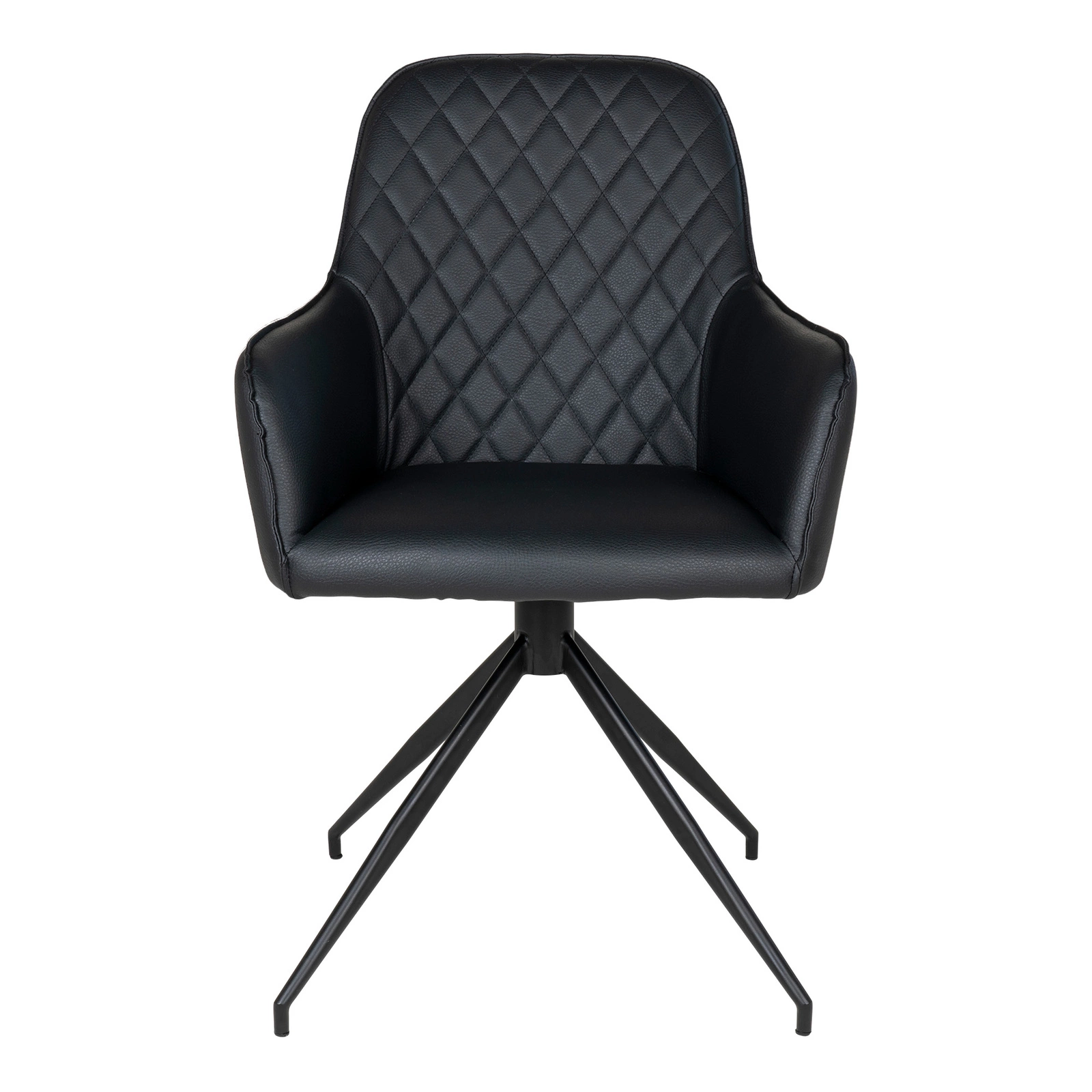 Otočná židle Harbo od značky Intesi je stylová černá židle čalouněná ekokůží, navržená s důrazem na pohodlí v jídelně i obývacím pokoji. Zaujme robustní ocelovou základnou na čtyřech nohách, pohodlnými područkami a otočnou funkcí, která usnadňuje každodenní používání. Široké sedadlo o šířce 56 cm a ergonomicky tvarované opěradlo zajišťují komfort i při dlouhých setkáních u stolu.
