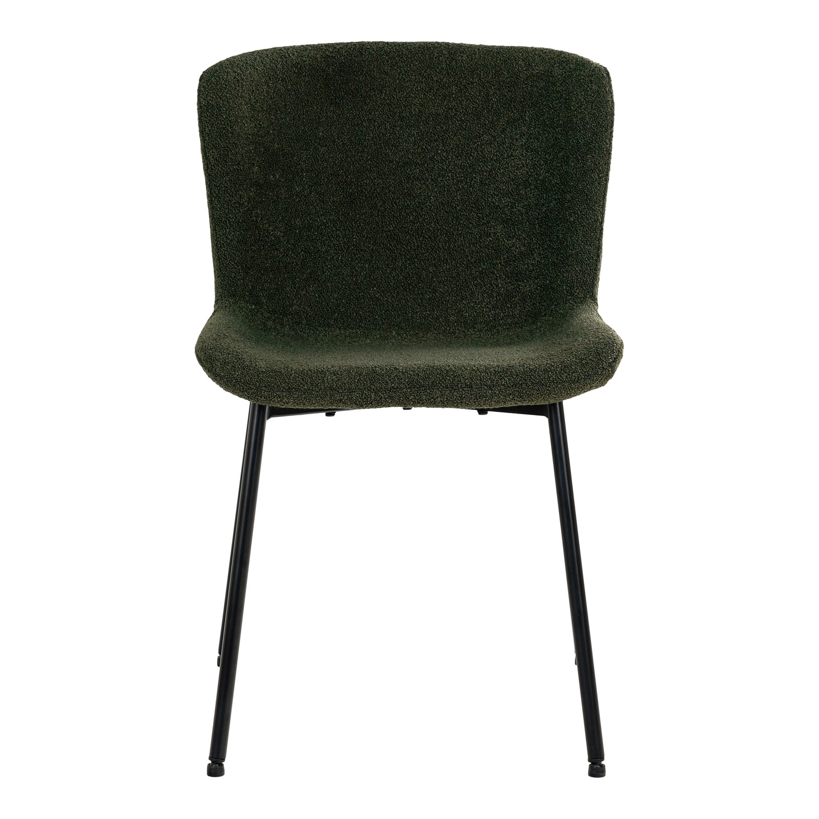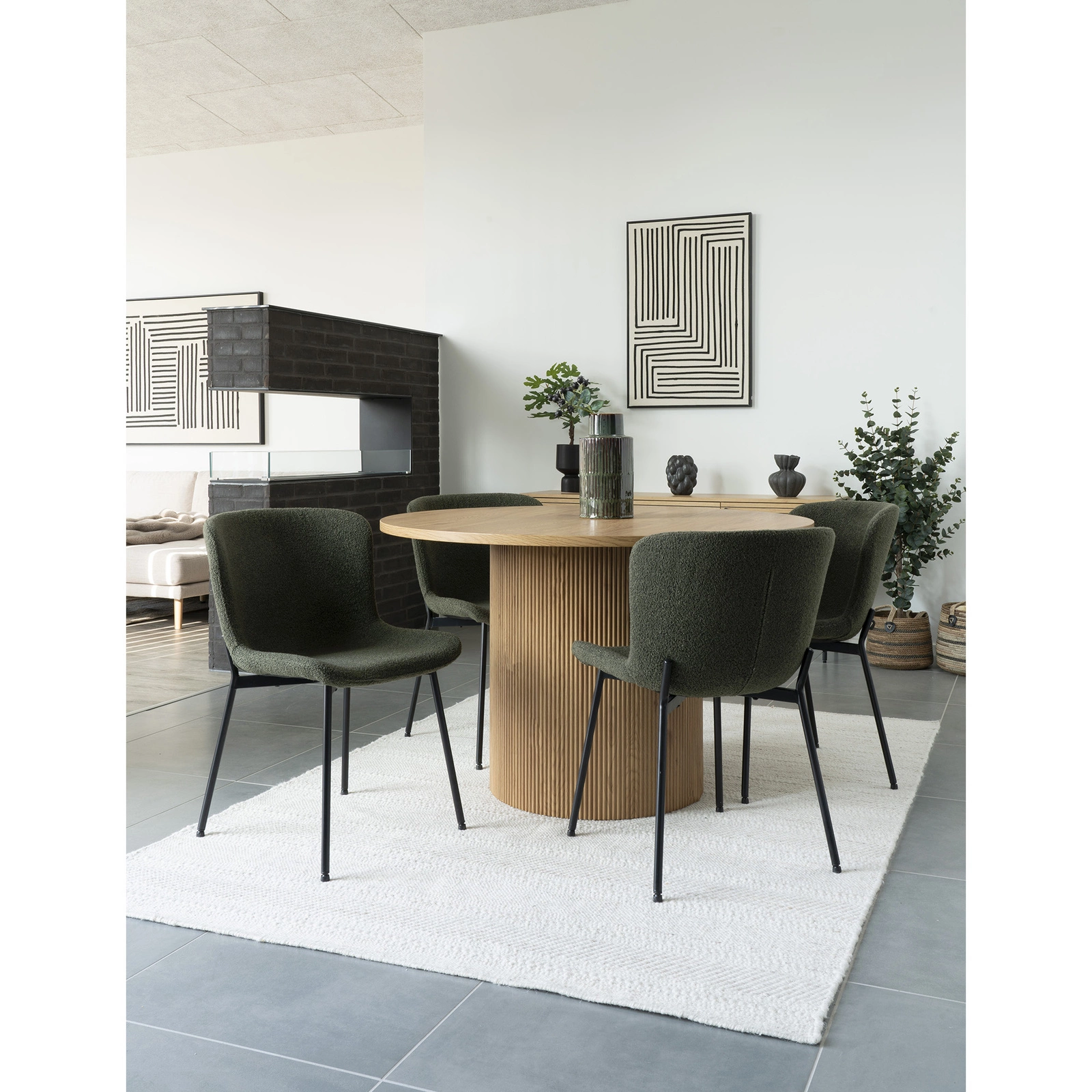 Měkká a na dotek příjemná látka boucle v sytě zeleném odstínu promění každé posezení u stolu v mimořádně komfortní zážitek. Sedák z pružné čalounické pěny obepíná tělo a poskytuje komfort i při dlouhých rodinných večeřích nebo setkáních s přáteli. Ergonomické opěradlo podpírá záda, takže tato čalouněná židle je ideální nejen do jídelny, ale i k pracovnímu stolu v domácí kanceláři nebo k odpočinku v obývacím pokoji.