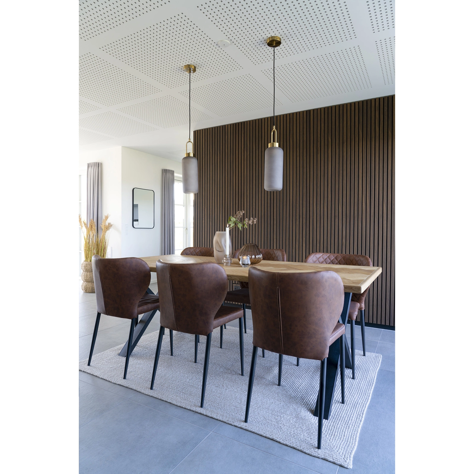 Židle Pisa Intesi okouzlí nadčasovým designem inspirovaným vintage estetikou, který perfektně zapadne do moderního interiéru. Hnědá ekokůže věrně imituje přírodní kůži, dodává prostoru útulnost a charakter, zatímco černé kovové nohy v polomatném provedení podtrhují eleganci. Díky univerzálnímu tvaru židli snadno sladíte se stolem v jídelně, do obývací sestavy nebo jako stylovou židli do kuchyně.