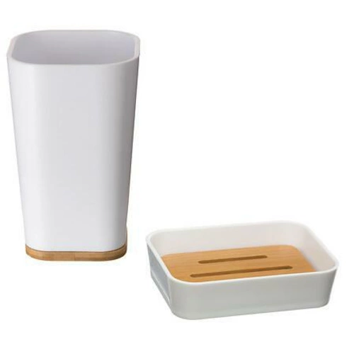 - Bílá koupelnová miska na mýdlo Natureo je výrobek vyrobený z kombinace plastu a bambusu, což zaručuje jeho trvanlivost a odolnost vůči vlhkosti.