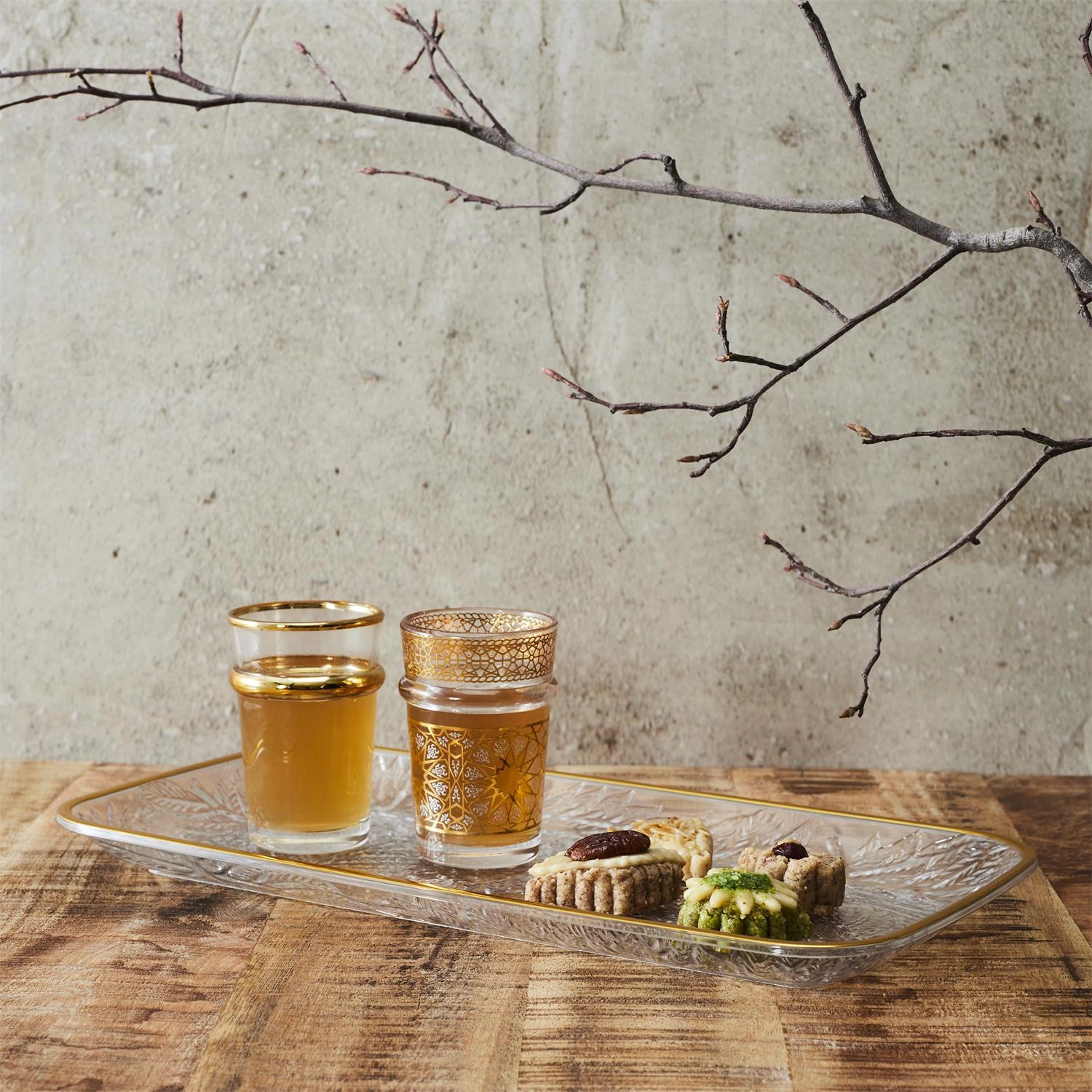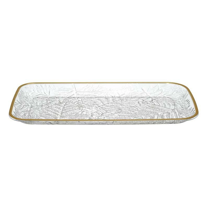 Kulatý dekorativní podnos Mirage dokonale zvýrazní atmosféru každodenních i slavnostních chvil u stolu. Průhledný materiál decentně podtrhuje podávané dobroty, zatímco zlatý okraj upoutá pozornost a vnáší do interiéru nádech luxusu. Ideální volba, pokud chcete podávat kávu, dort nebo ovoce stylově a potěšit hosty smyslem pro detail.