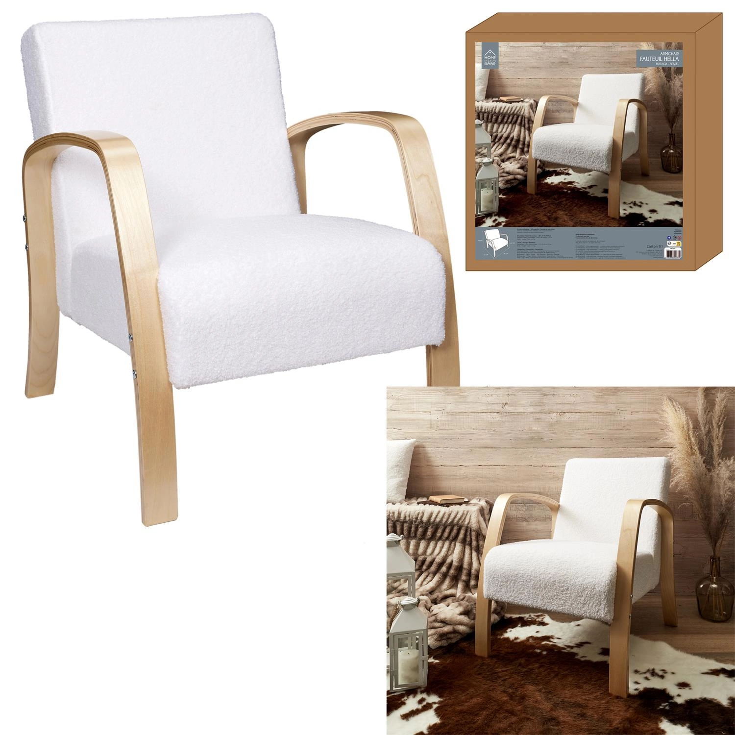Díky vaničkovému tvaru a správně tvarovanému opěradlu poskytuje křeslo do obýváku Hella stabilní oporu zádům i ramenům. Sedadlo ve výšce 41 cm umožňuje pohodlné sezení jak nižším, tak vyšším osobám, zatímco široké područky zpříjemní relaxaci s knihou či šálkem kávy. Čalounická pěna použitá v sedáku zaručuje pohodlí i při delším odpočinku. Příjemná na dotek tkanina bouclé zvyšuje komfort a vybízí k pravidelnému používání křesla.
