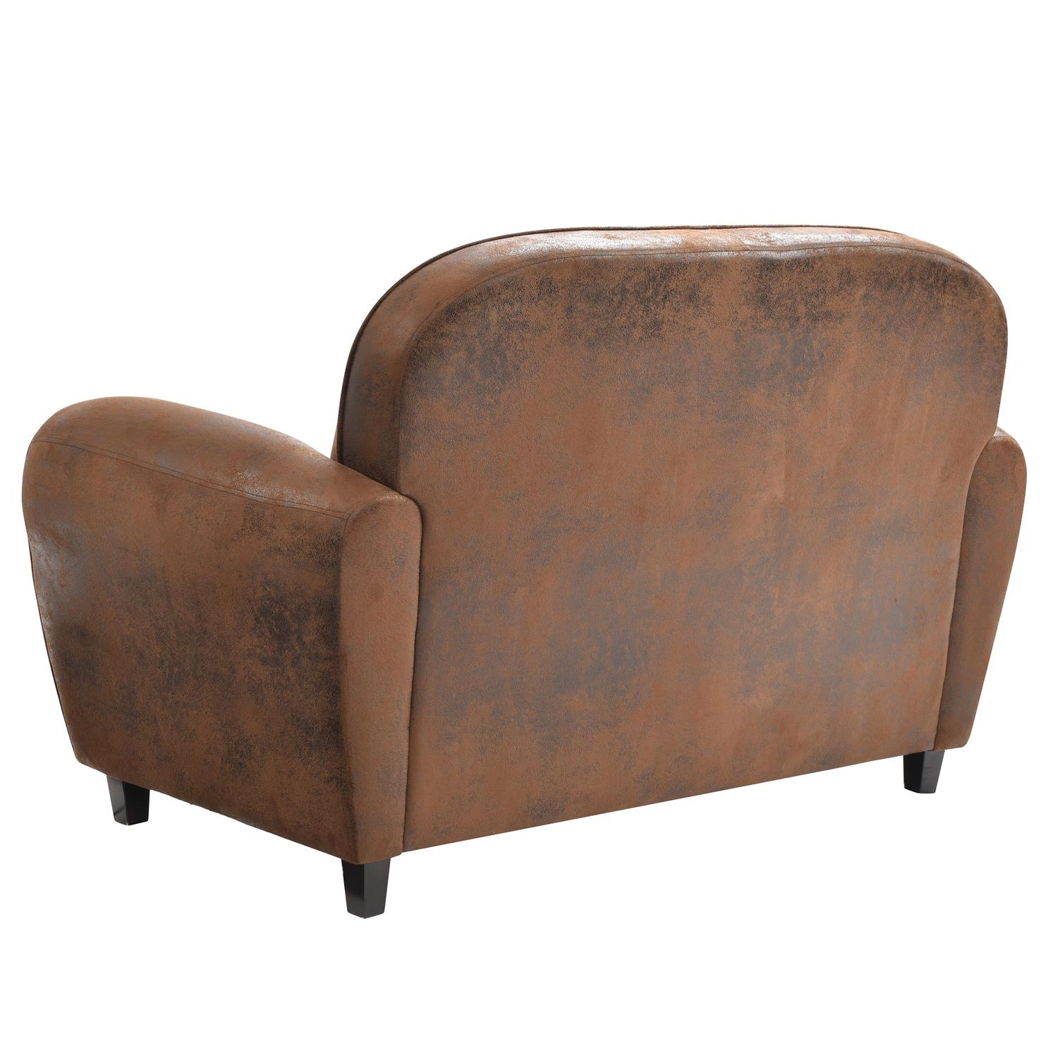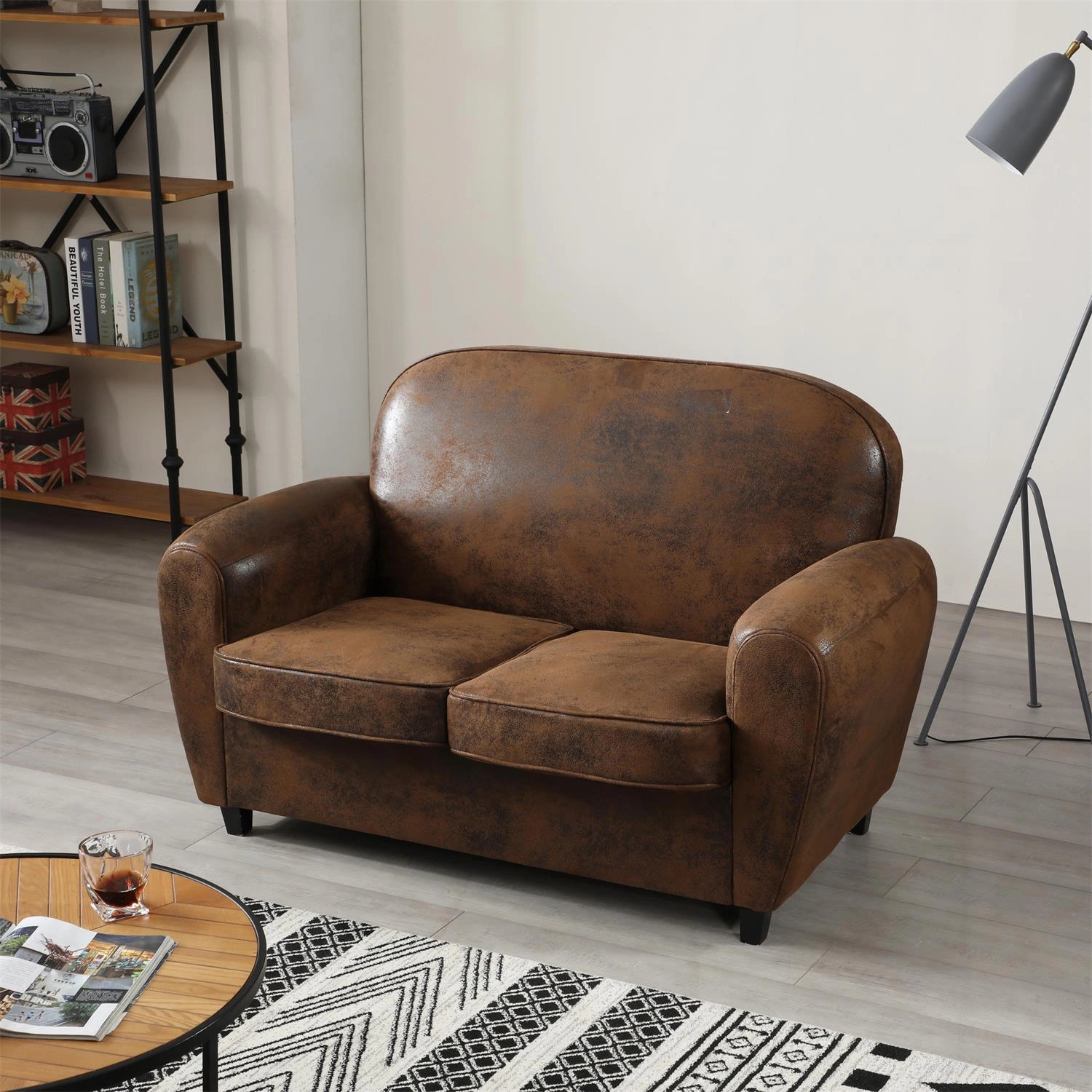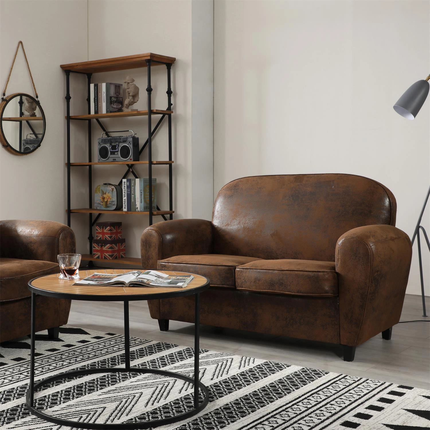Dvojmístná vintage pohovka z ekokůže Intesi Klubová hnědá do obýváku a pracovny na dřevěných nohách
