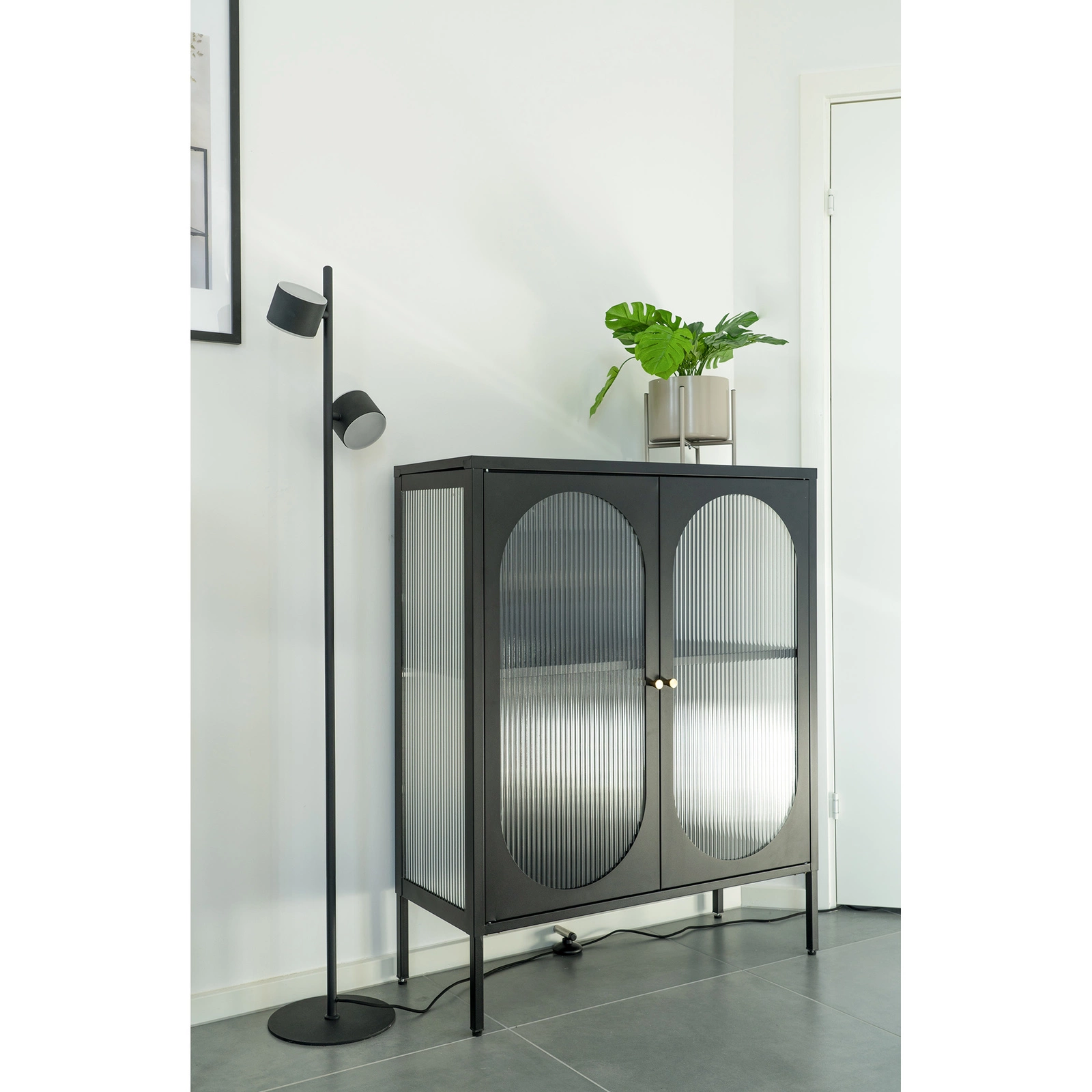 Adelaide byla navržena pro milovníky moderních a industriálních prostor. Černé kovové prvky spolu se skleněnými čely vytvářejí harmonický celek, který perfektně zapadne do loftového stylu. Jednoduché linie a jemný lesk umožňují snadné začlenění jak do obývacího pokoje, tak domácí pracovny nebo předsíně. Tento kus nábytku je ideální jako výrazná černá skleněná vitrína v centru vaší domácnosti.