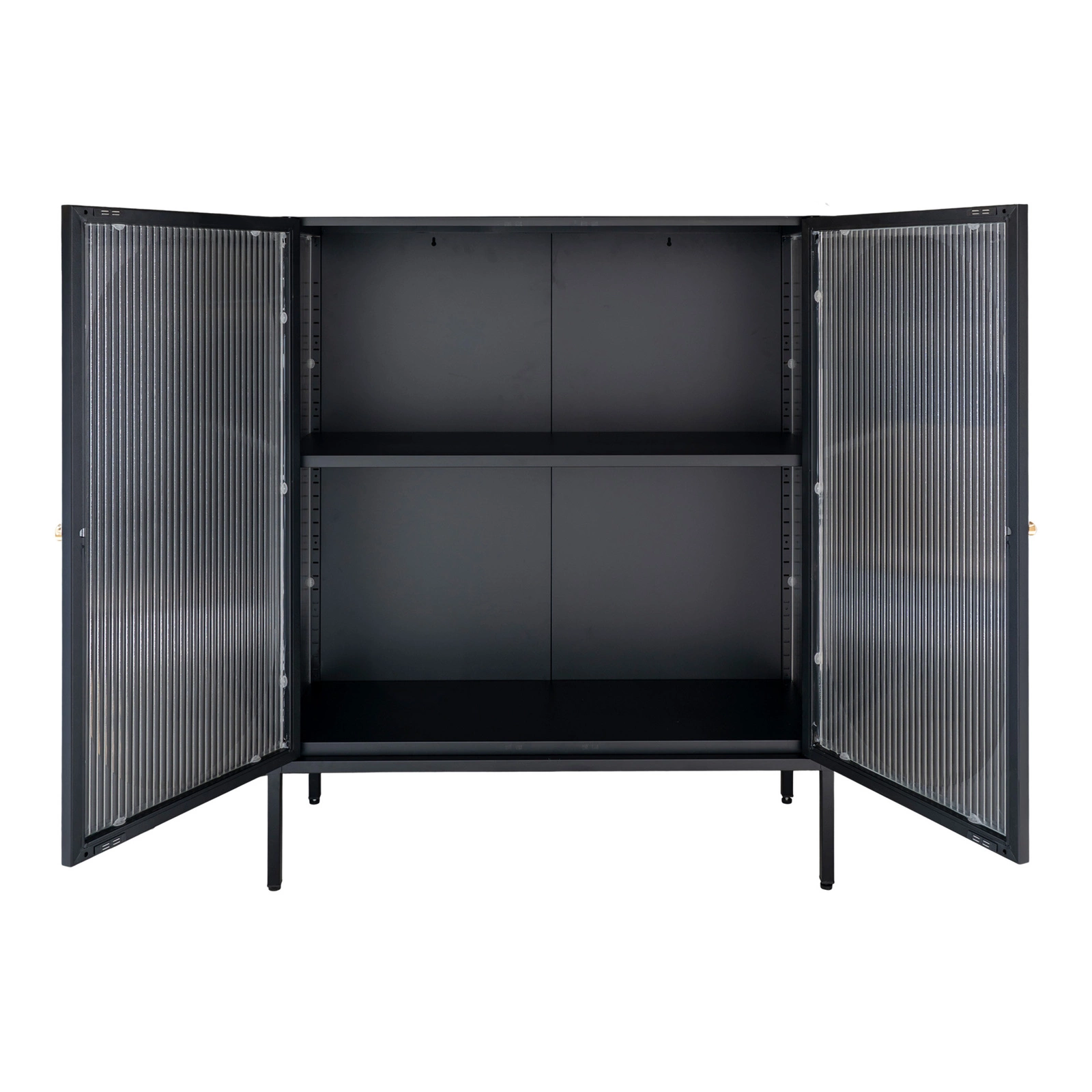 Dvě prostorné police umožňují pohodlné uložení oblíbených knih, sbírky skla nebo alkoholu. Hladká skleněná dvířka nejen účinně chrání obsah před prachem, ale zároveň umožňují atraktivní vystavení. Čtyři robustní kovové nohy zajišťují stabilitu i při větším zatížení a snadná údržba je zárukou elegantního vzhledu po dlouhá léta.
