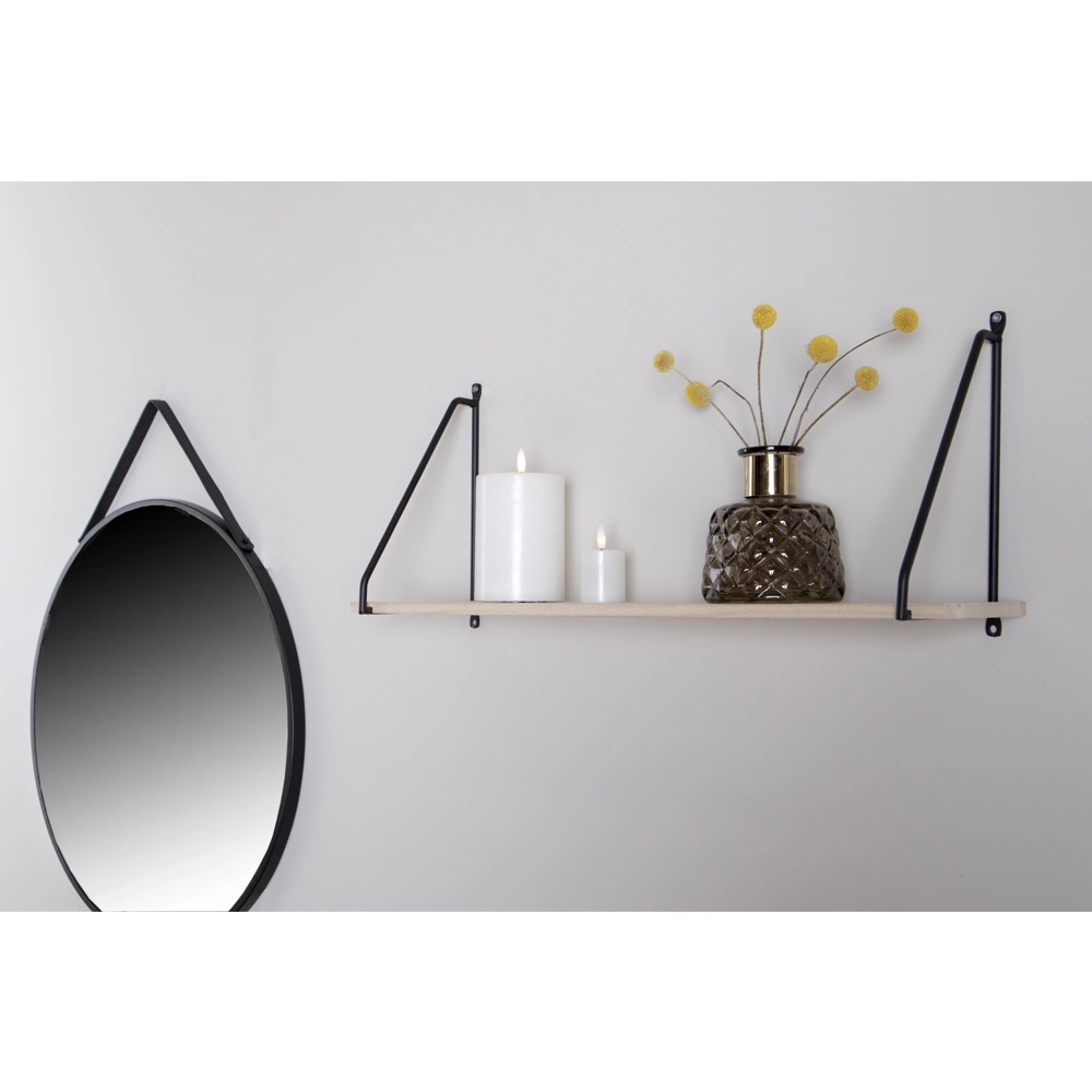 Dřevěná nástěnná police Arnhem od značky Intesi je funkční a stylové řešení do moderních interiérů. Kombinace přírodního dřeva a matně černého ocelového rámu vytváří jedinečný, industriální charakter, který skvěle doplní jak obývací pokoj, ložnici, tak i domácí pracovnu. Promyšlený rozměr 65×17×27 cm zajišťuje, že police je ideální na knihy, dekorace, rámečky s fotografiemi nebo menší rostliny.