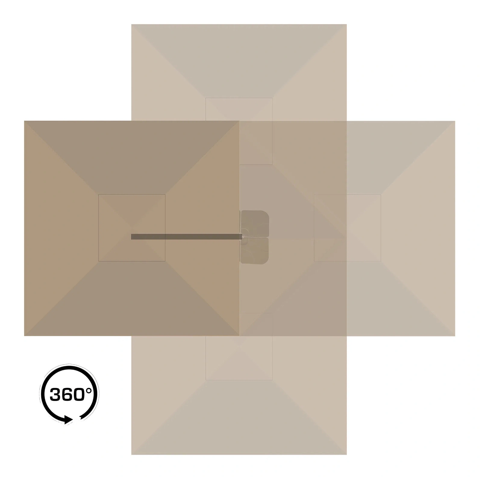 - Velký průměr cca 295 cm – poskytuje široký stín pro zahradní stůl nebo odpočinkovou sestavu a zvyšuje pohodlí při relaxaci venku.