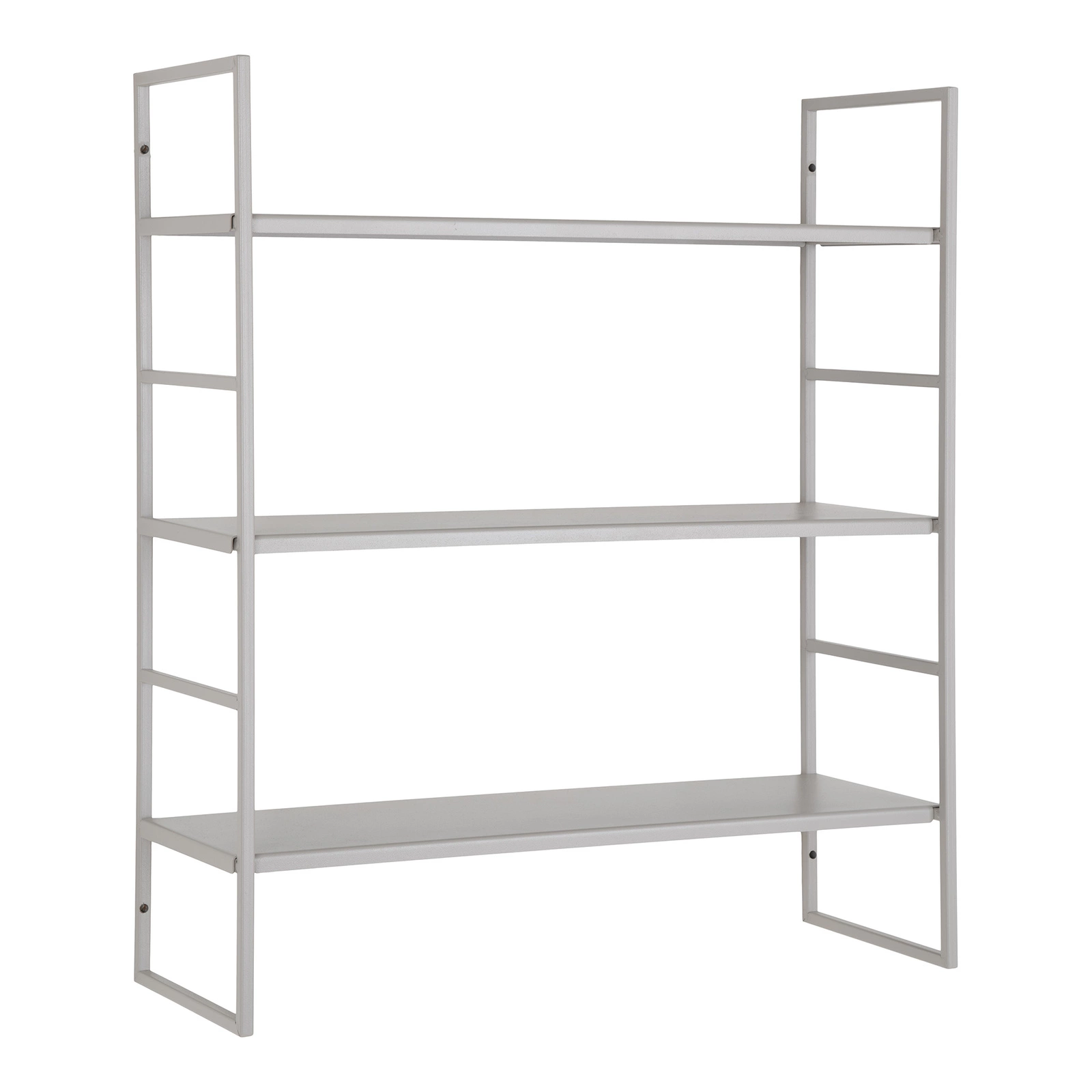 Kovová nástěnná police Beja šedá 3patrová na knihy a dekorace do obýváku Intesi