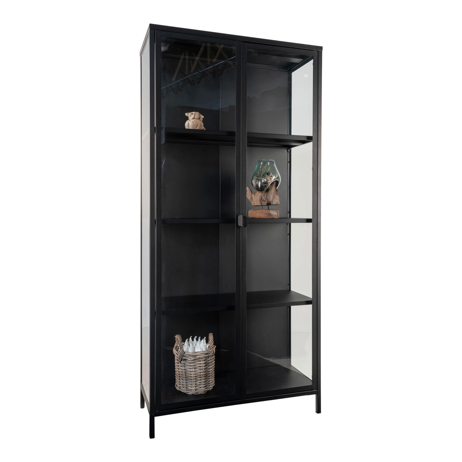 Skleněná vitrína Brisbane od značky Intesi je volbou pro ty, kteří oceňují loftový styl a praktická řešení. Skvěle se hodí jako centrální prvek obývacího pokoje, ale i jako stylový doplněk do pracovny nebo předsíně. Díky univerzální černé barvě a promyšlené konstrukci spojuje moderní design s funkčností a nabízí prostor pro knihy, alkohol i oblíbené dekorace.