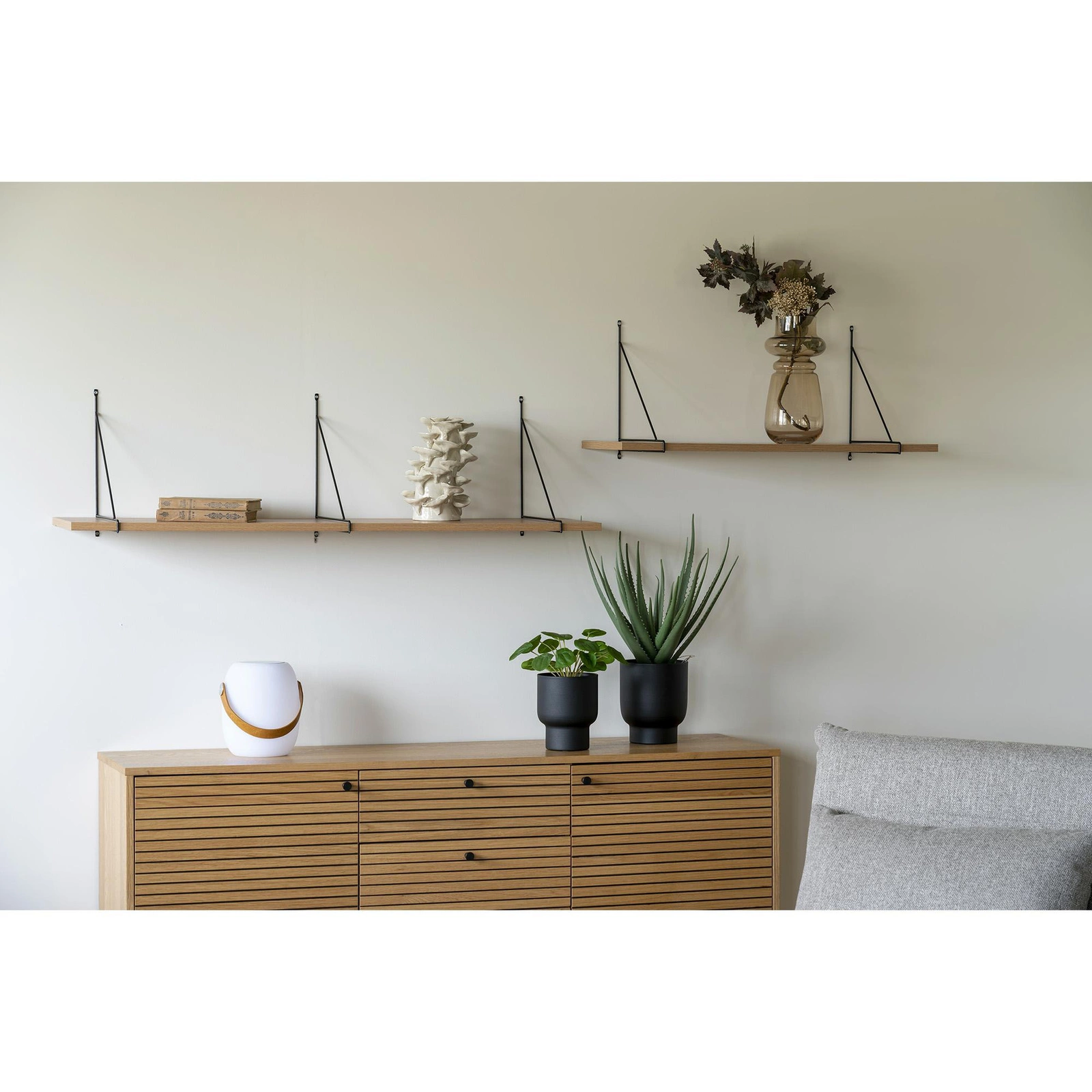 Výrazná kombinace černého kovu a přírodního dřeva dodává polici Chiba jedinečný, moderní vzhled. Estetické polomatné provedení vynikne elegantně jak na světlé, tak i tmavé stěně. Je to volba pro ty, kdo oceňují minimalistický design a chtějí do interiéru vnést loftovou atmosféru bez zbytečné okázalosti.