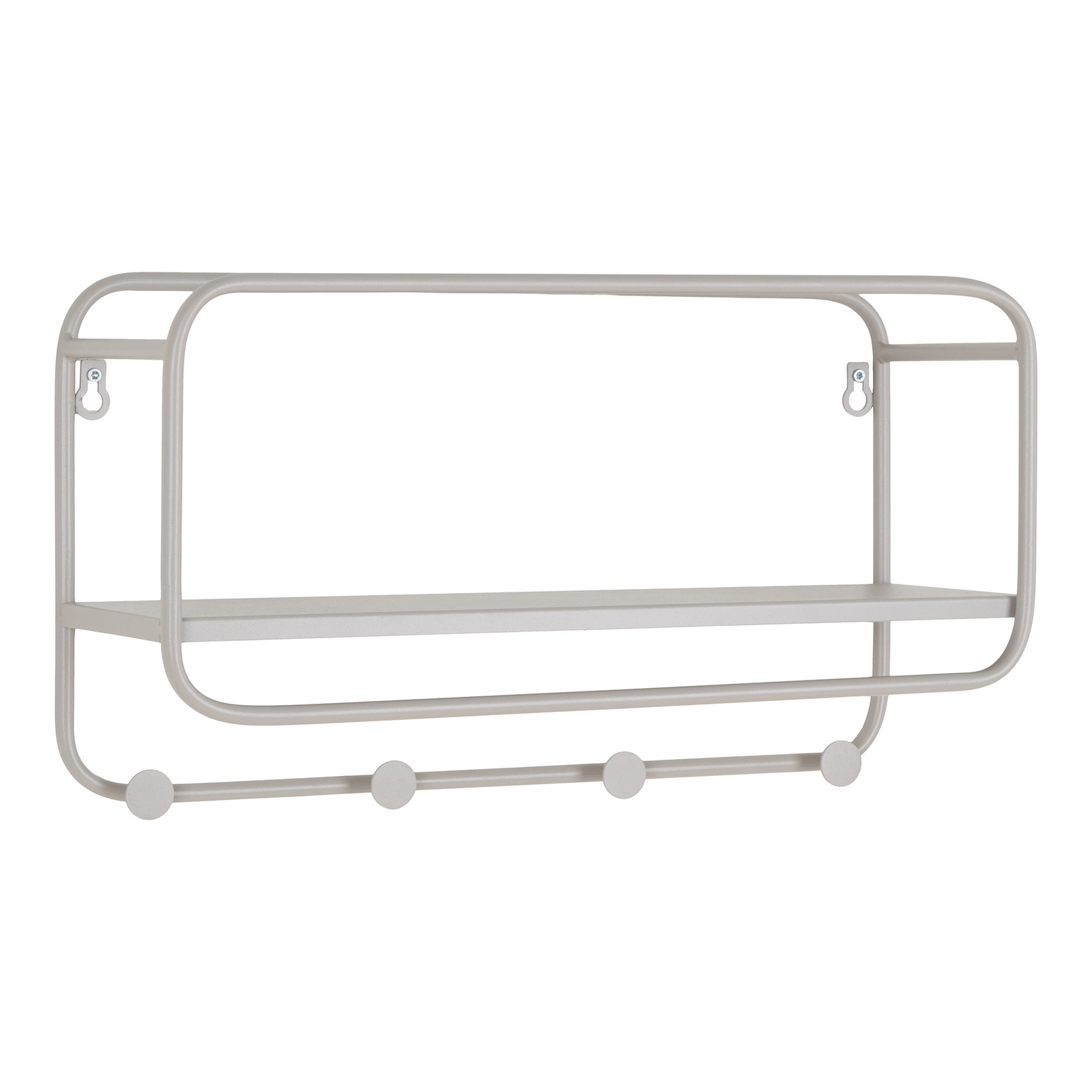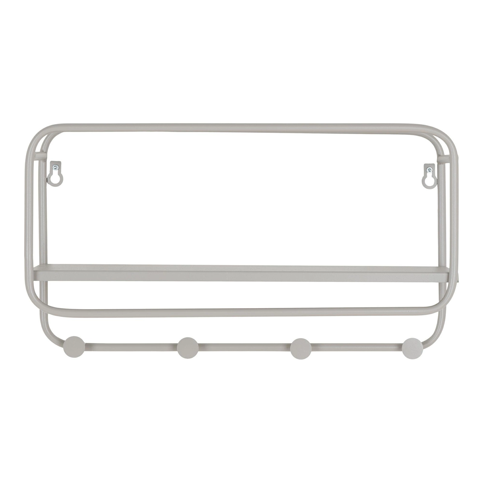 Šedý nástěnný věšák Feira je skvělou volbou pro ty, kteří ocení minimalistický, severský design a praktická řešení. Čtyři háčky umožní snadné odkládání bund, kabátů nebo tašek po příchodu domů, zatímco horní police pomůže zorganizovat klíče, čepice či dekorativní doplňky. Kovová konstrukce zajišťuje odolnost vůči každodennímu používání a jemně zaoblené boční hrany dodávají celku lehkost a harmonii.