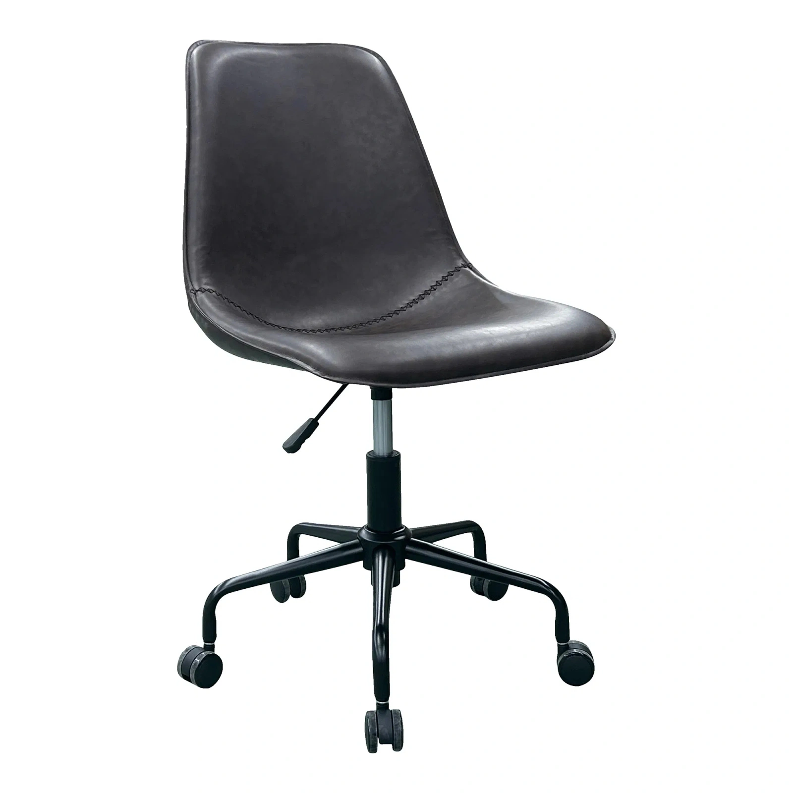 Monaco spojuje funkci pohodlné kancelářské židle s estetikou moderního nábytku. Čalounění z eko kůže v tmavě hnědé barvě dodává sedáku nadčasový vzhled, který se výborně hodí k psacím stolům v loftovém, minimalistickém i moderně klasickém stylu. Díky kompaktní šířce 48 cm se židle vejde i do menších interiérů, aniž by prostor opticky zatěžovala.
