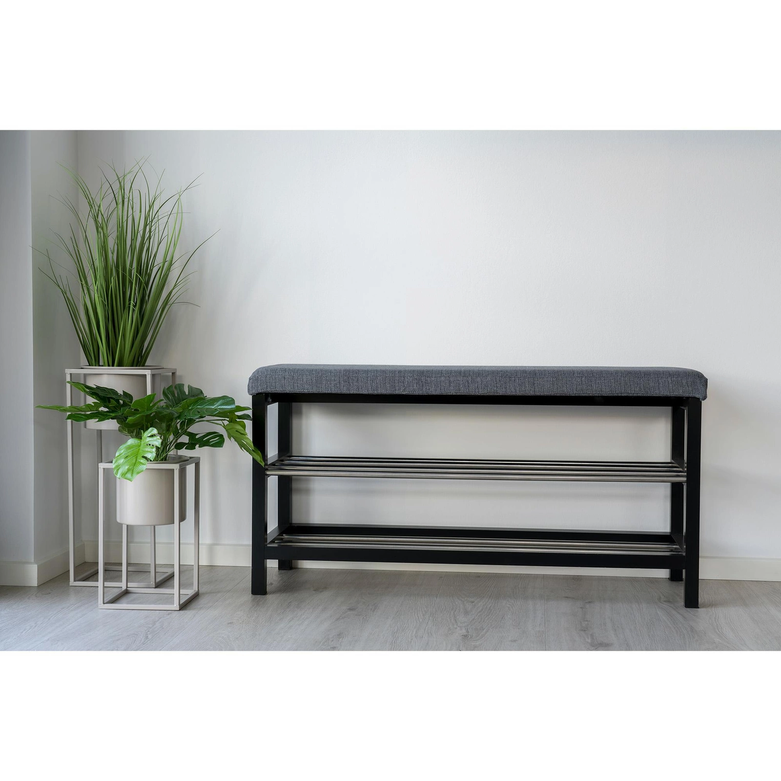 Padova přináší do interiéru svěžest díky kombinaci šedého čalounění a černých ocelových nohou. Tato moderní lavice do předsíně se perfektně hodí jak do minimalistických, tak i výraznějších aranžmá. Čalouněné sedadlo poskytuje pohodlí při obouvání bot a neutrální barva umožňuje snadné sladění s různými odstíny stěn nebo doplňky.