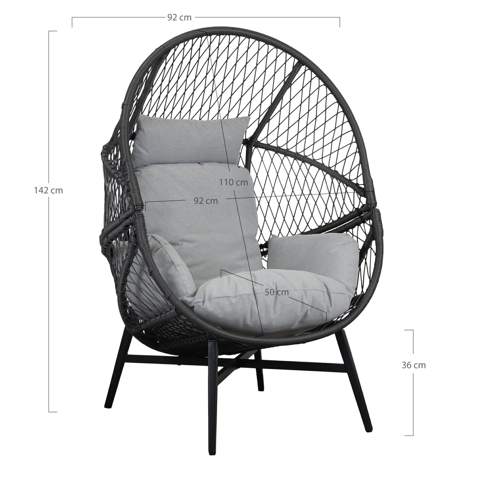 Zahradní křeslo kokon Rosario od značky Intesi je kombinací moderního tvaru, skandinávského stylu a pohodlí, které okouzlí na první posezení. Vyrobené z odolného technoratanu v elegantní černo-šedé barevné kombinaci je ideální volbou na terasu, balkon nebo do zahrady. Široké sedadlo o rozměrech 73×74 cm a výška 103 cm zajišťují maximální komfort při odpočinku na čerstvém vzduchu po mnoho sezón.