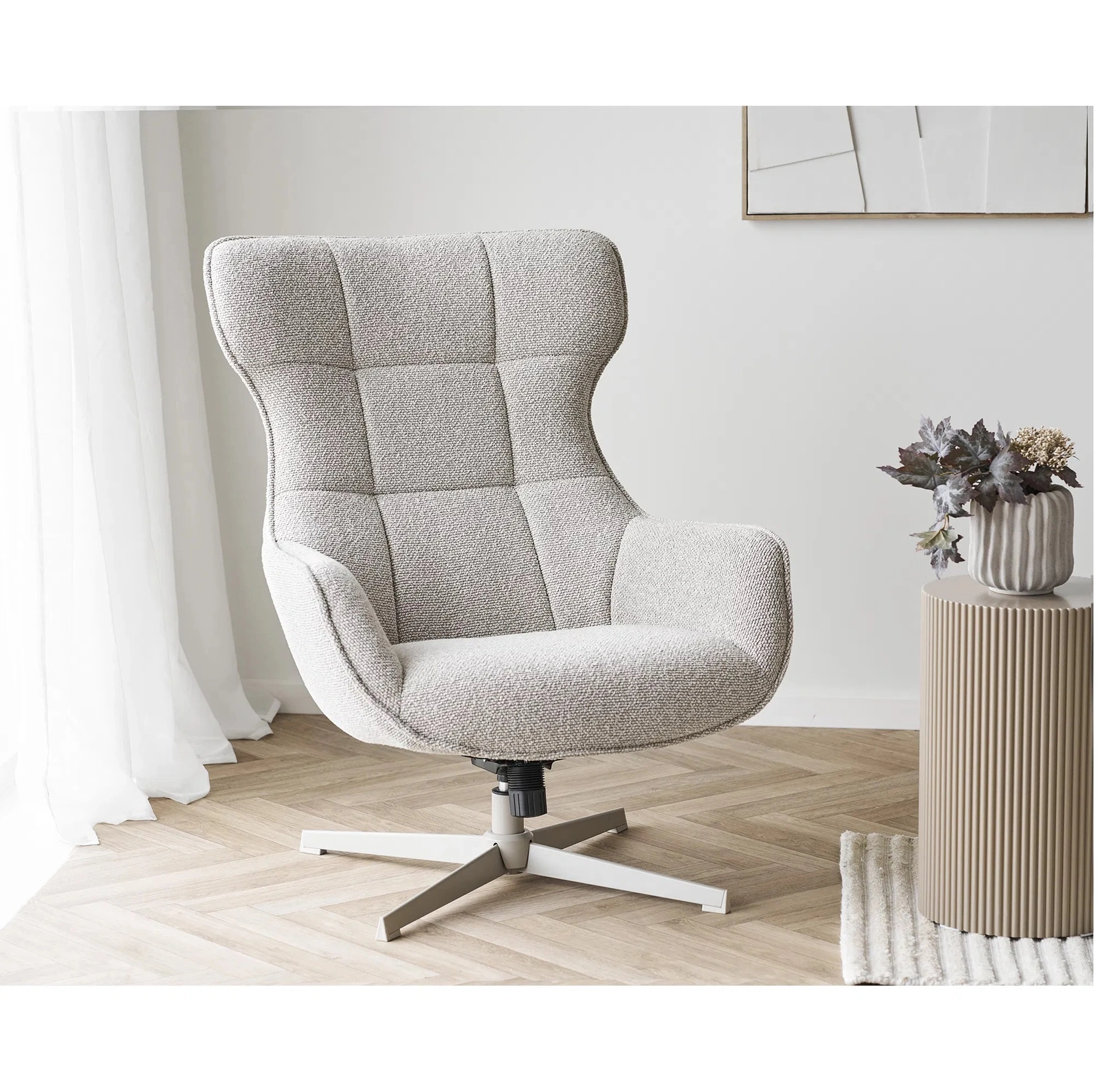 Otočná kancelářská židle Turin značky House Nordic je moderní bílý kancelářský křeslo do kanceláře i pracovny, čalouněné měkkou látkou boucle a postavené na stabilní základně s kolečky. Vysoké opěradlo, pohodlné područky a široký sedák zajišťují komfort při práci, studiu i online schůzkách.