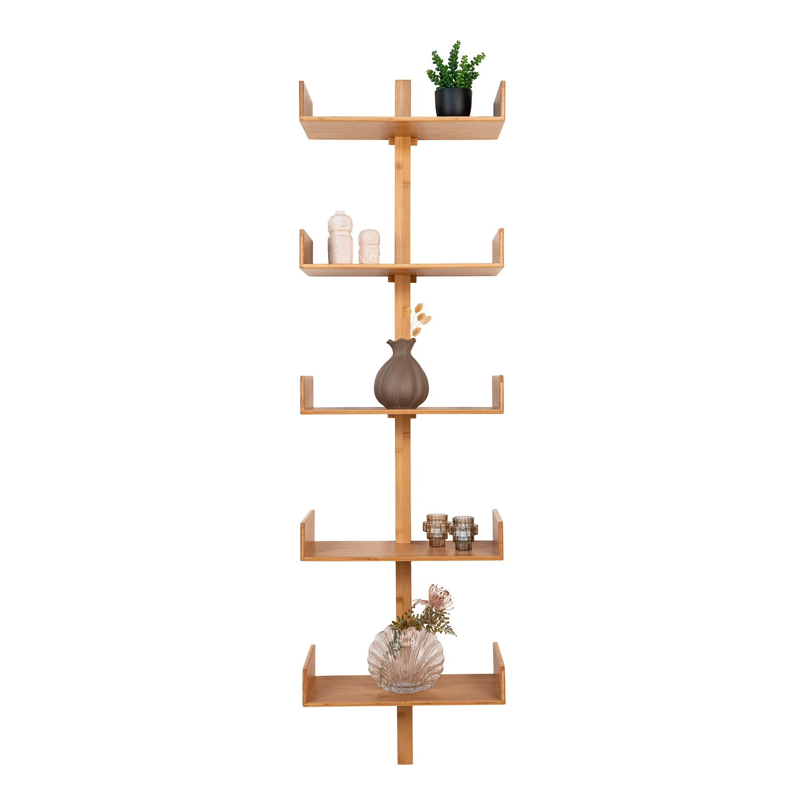 Dřevěná bambusová knihovna 5 úrovní Intesi je spojením přírodní elegance, praktičnosti a moderního designu. Vyrobena z odolného bambusového dřeva a s polomatnou povrchovou úpravou, tato police o výšce 180 cm nabízí hned pět prostorných úrovní pro vaše věci. Díky lehké konstrukci (7 kg) ji snadno přemístíte, zatímco univerzální přírodní odstín perfektně zapadne do boho i moderních interiérů obývacího pokoje, ložnice nebo předsíně.