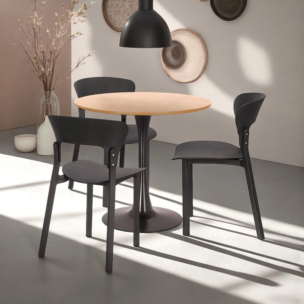 Židle Kabru černá od značky Intesi je moderní jídelní a zahradní židle, vyrobená celá z odolného plastu s elegantním, polomatným povrchem. Ergonomicky tvarované sedadlo o šířce 45 cm a pohodlné opěradlo zajišťují komfort jak při každodenním stolování, tak při odpočinku na terase nebo balkoně. Díky odolnosti vůči povětrnostním vlivům a snadné údržbě je Kabru skvělou volbou nejen do interiéru, ale i pro venkovní použití.