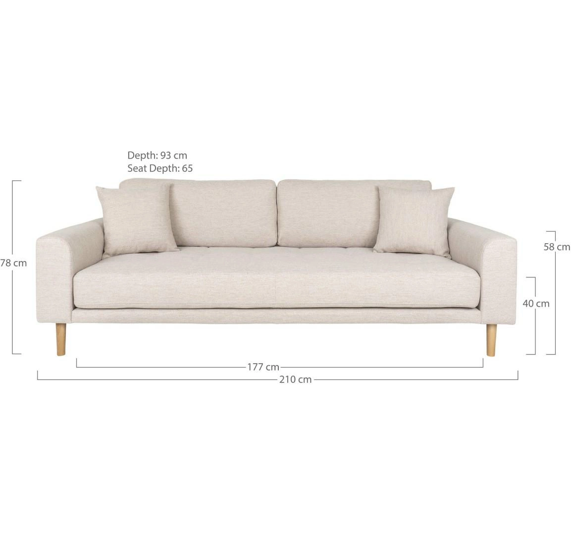 Skandinávská pohovka Lido 3 béžová od značky Intesi je třímístná čalouněná pohovka, která zaujme jemným, přírodním odstínem a nadčasovou jednoduchostí. Vyniká pohodlným sedákem z pružné pěny, komfortními područkami a pevnou konstrukcí s bukovým dřevem. Díky šířce 210 cm a hloubce 65 cm je ideální volbou do obývacího pokoje, studentského pokoje nebo předsíně, kde vytvoří útulný prostor pro každodenní odpočinek.