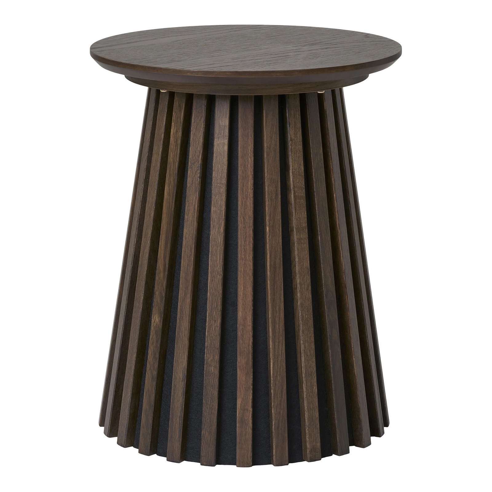 Kulatý konferenční stolek Osaka 40 cm Intesi je spojením praktičnosti, přírodních materiálů a nadčasového designu. Povrch v odstínu kouřového dubu, kulatá deska a robustní, centrální noha dělají z tohoto moderního stolku unikátní doplněk každého obývacího pokoje, předsíně nebo i kavárny. Díky kompaktním rozměrům (výška 50 cm, průměr 40 cm) se hodí jako konferenční stolek do obýváku, malý odkládací stolek nebo praktický pomocný stolek.Nadčasový design a přírodní materiály – objevte blíže konferenční stolek Osaka