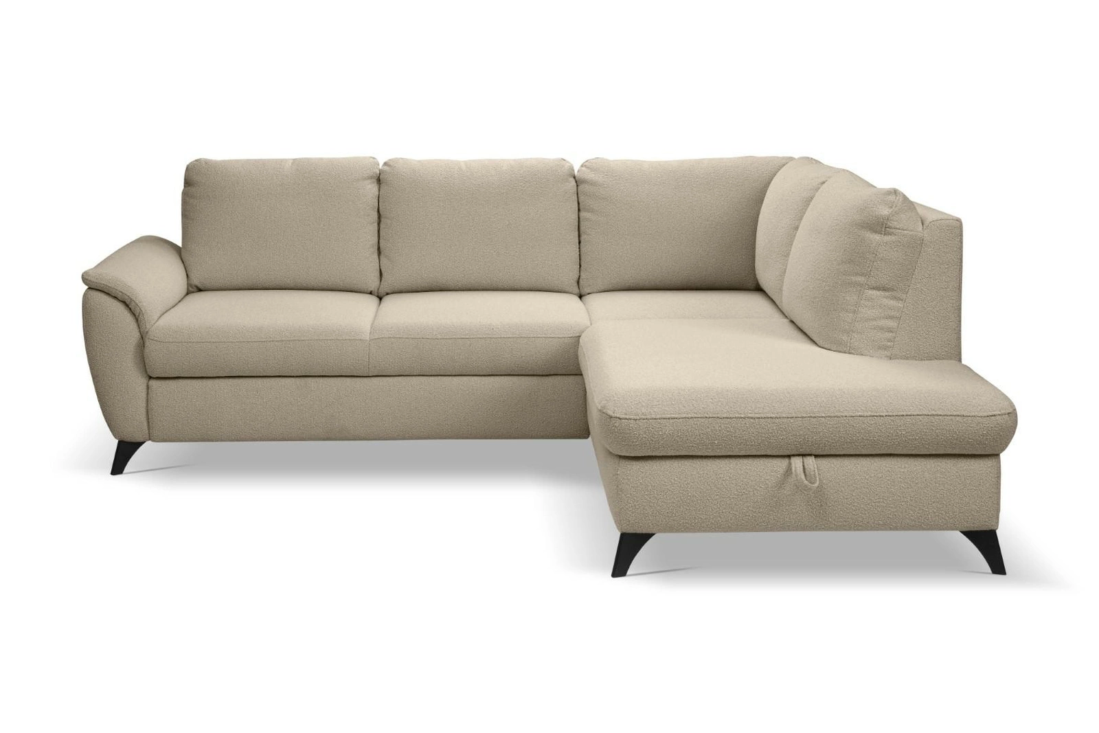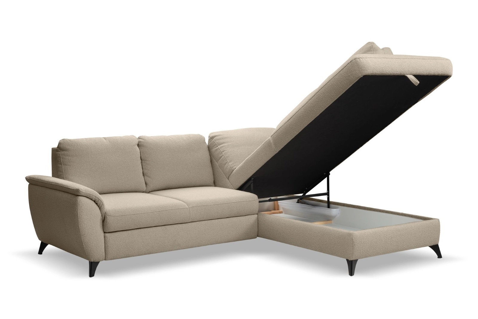 Narožní pohovka s rozkládací funkcí Nevada béžová pravá od značky Intesi je spojením moderního designu, pohodlí a praktických řešení pro obývací pokoj. Čalouněná příjemnou na dotek látkou Loop 8 v odstínu béžové nabízí šířku 244 cm a hloubku 202 cm, což zaručuje dostatek prostoru pro tři osoby, a po rozložení poskytuje komfortní plochu na spaní 128×185 cm. Model je vybaven praktickým úložným prostorem na lůžkoviny, stabilními černými nožkami a funkčními područkami – ideálně splňuje požadavky moderních interiérů.