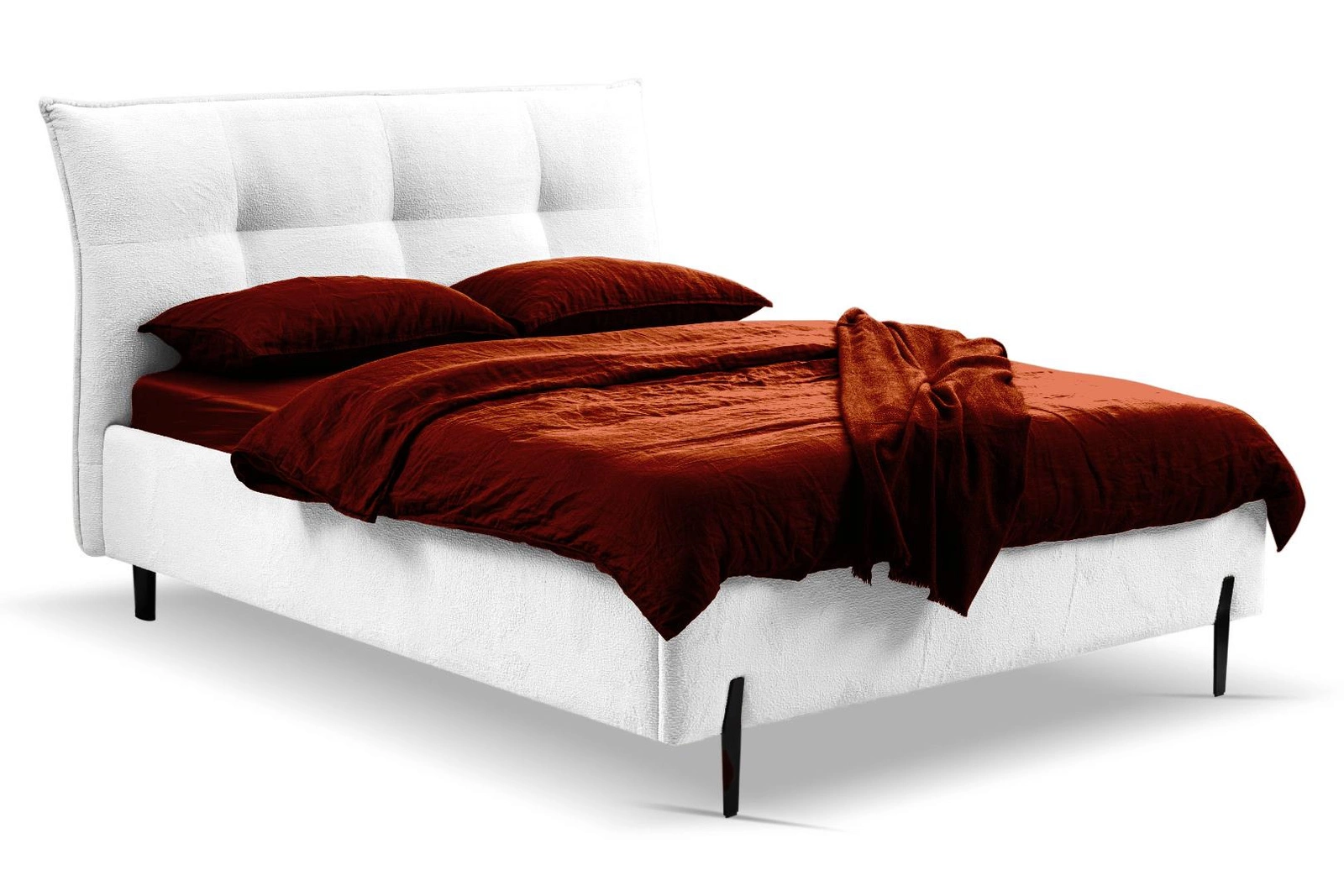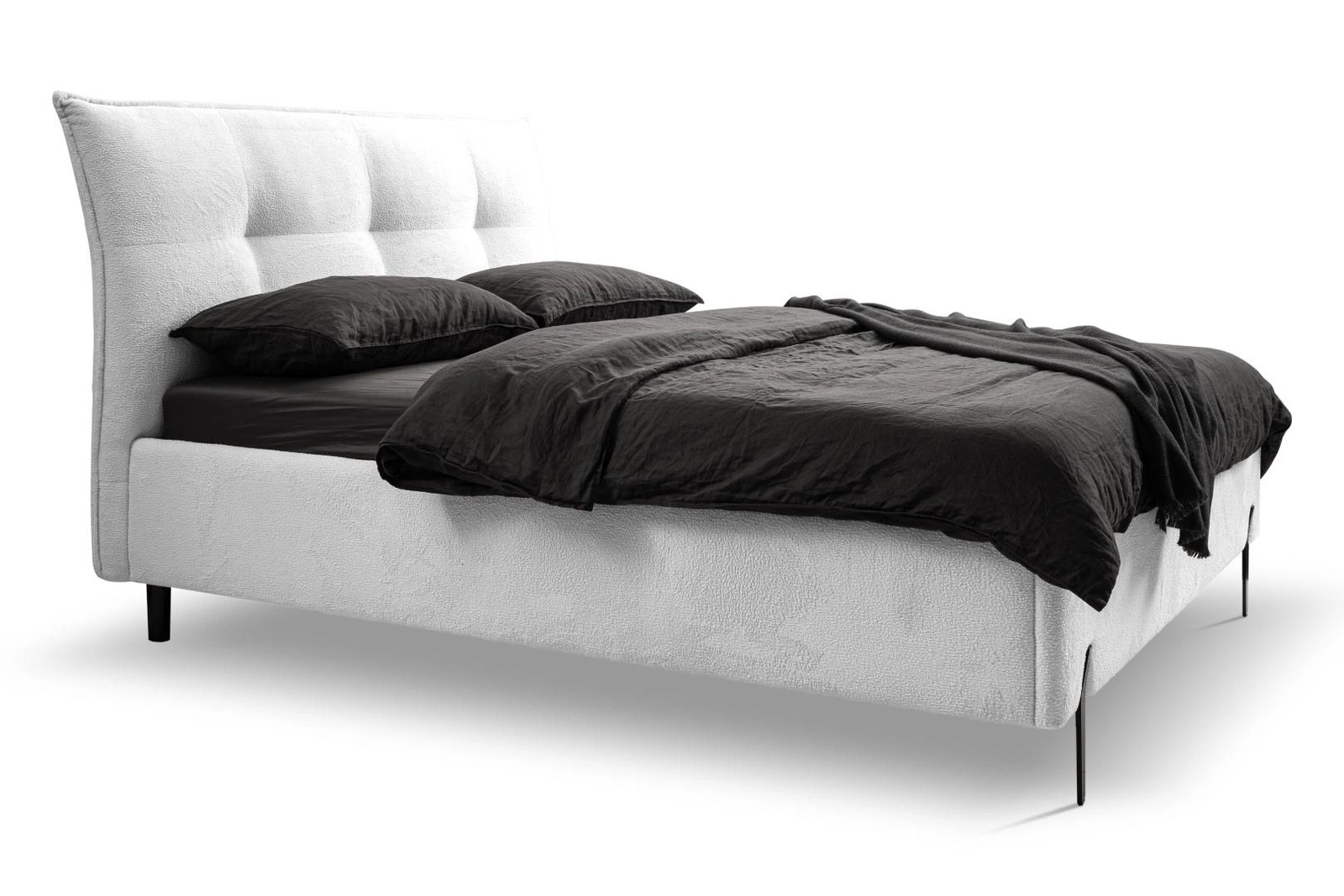 Design postele Biscuit je kombinací skandinávské jednoduchosti a modernosti. Bílé čalounění dodává posteli eleganci a činí z tohoto kusu nábytku ústřední bod každé ložnice. Bílé čelo postele a kovové nohy vytvářejí ucelený celek, který se hodí do každého interiéru, od minimalistického až po klasičtější styl.