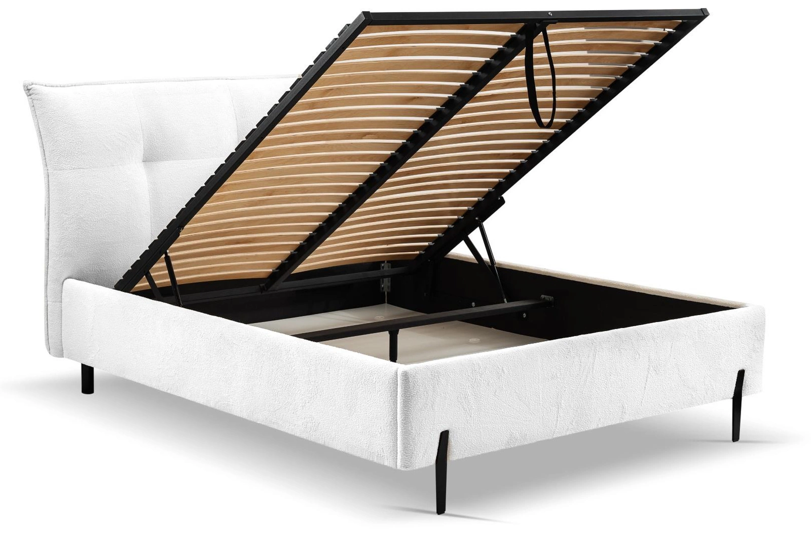 Postel Biscuit je nejen stylovým kusem nábytku, ale také praktickým řešením pro ložnici. Je vybavena kovovým rámem se 48 pružinovými lamelami, který poskytuje matraci dostatečnou oporu. Postel má navíc plynový zdvih 1000 N, který umožňuje snadný přístup k zásobníku na lůžkoviny. Kontejner je robustní a pojme až 7 kg lůžkovin.