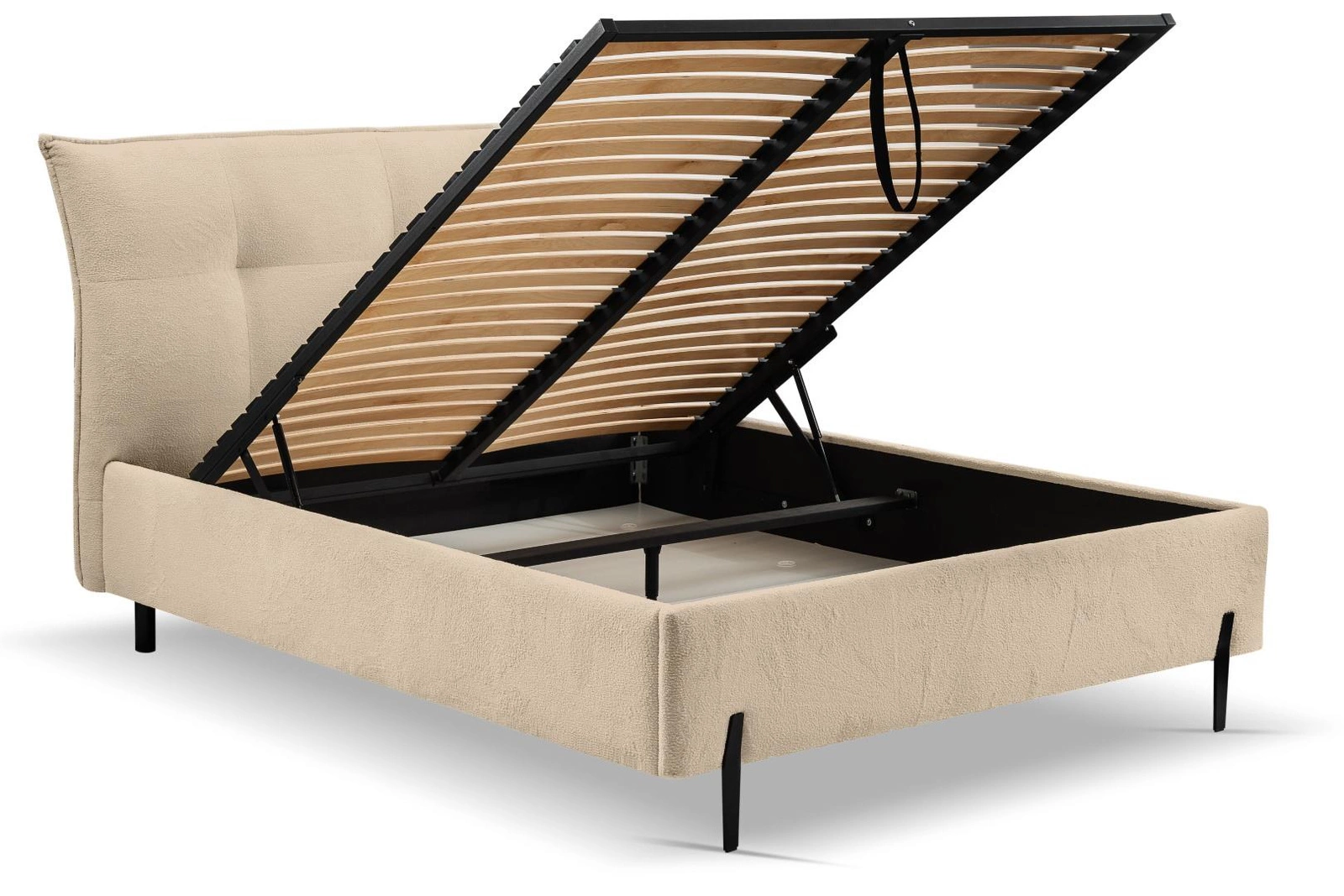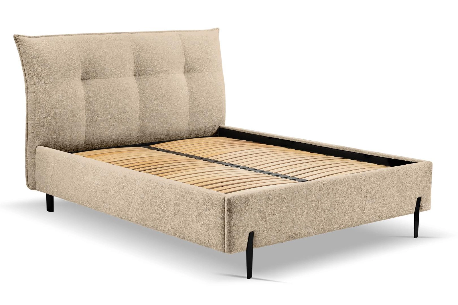Čalouněná postel Biscuit 140x200 je ideální volbou pro ty, kteří oceňují pohodlí, skandinávský styl a praktická řešení v ložnici. Tento model zaujme béžovým čalouněním z látky Cosy, velkou plochou na spaní 140x200 cm a integrovaným úložným prostorem na lůžkoviny. Stabilní základna z kovu v kontrastní černé barvě a čalouněné čelo postele zajišťují komfort i dlouhou životnost na mnoho let.