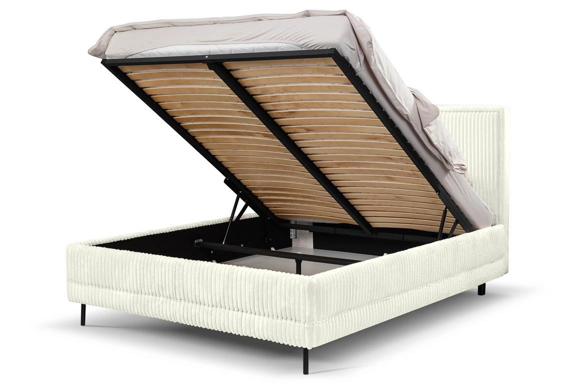 Postel Foggy 160x200 je vybavena prostorným úložným prostorem na lůžkoviny, kam snadno uložíte přikrývky, polštáře nebo sezónní textilie. Získáte tak další místo na uložení věcí a jednodušeji udržíte pořádek v ložnici. Rošt s pružnými lamelami zajišťuje správnou cirkulaci vzduchu pod matrací i stabilní oporu bez ohledu na typ vybrané matrace.