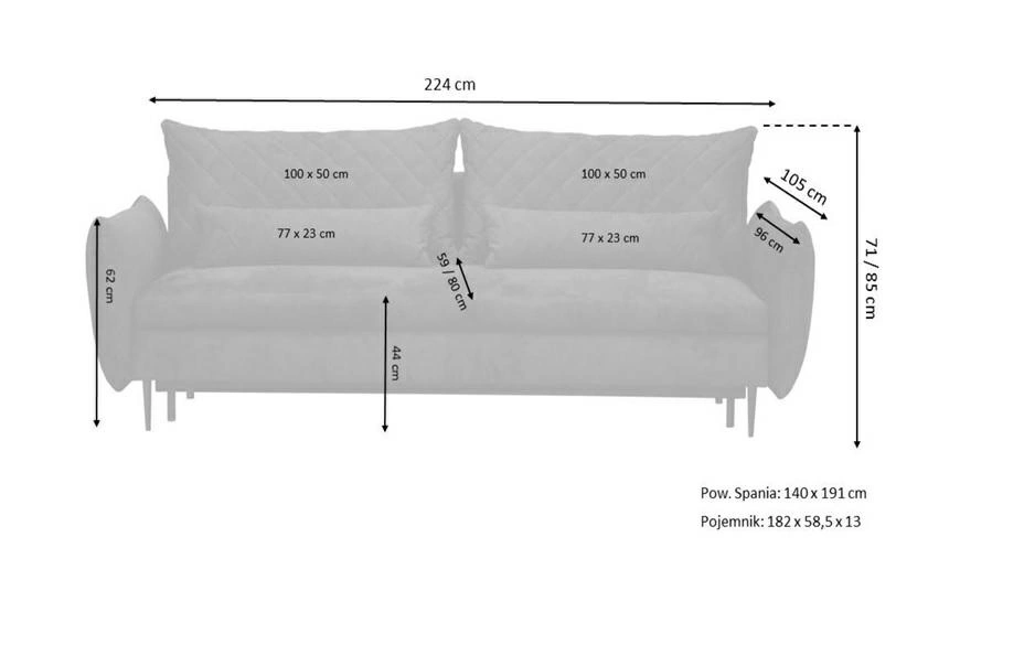 Cecile je mnohem víc než klasická pohovka s funkcí spaní. Během chvilky ji proměníte v plnohodnotnou postel o rozměrech 140x190 cm – ideální pro každodenní spaní i pro hosty. Praktický úložný prostor pod sedákem umožňuje diskrétně uložit lůžkoviny, deky nebo sezónní textil, takže šetříte místo a udržujete obývací pokoj vždy uklizený i bez dalších skříněk.