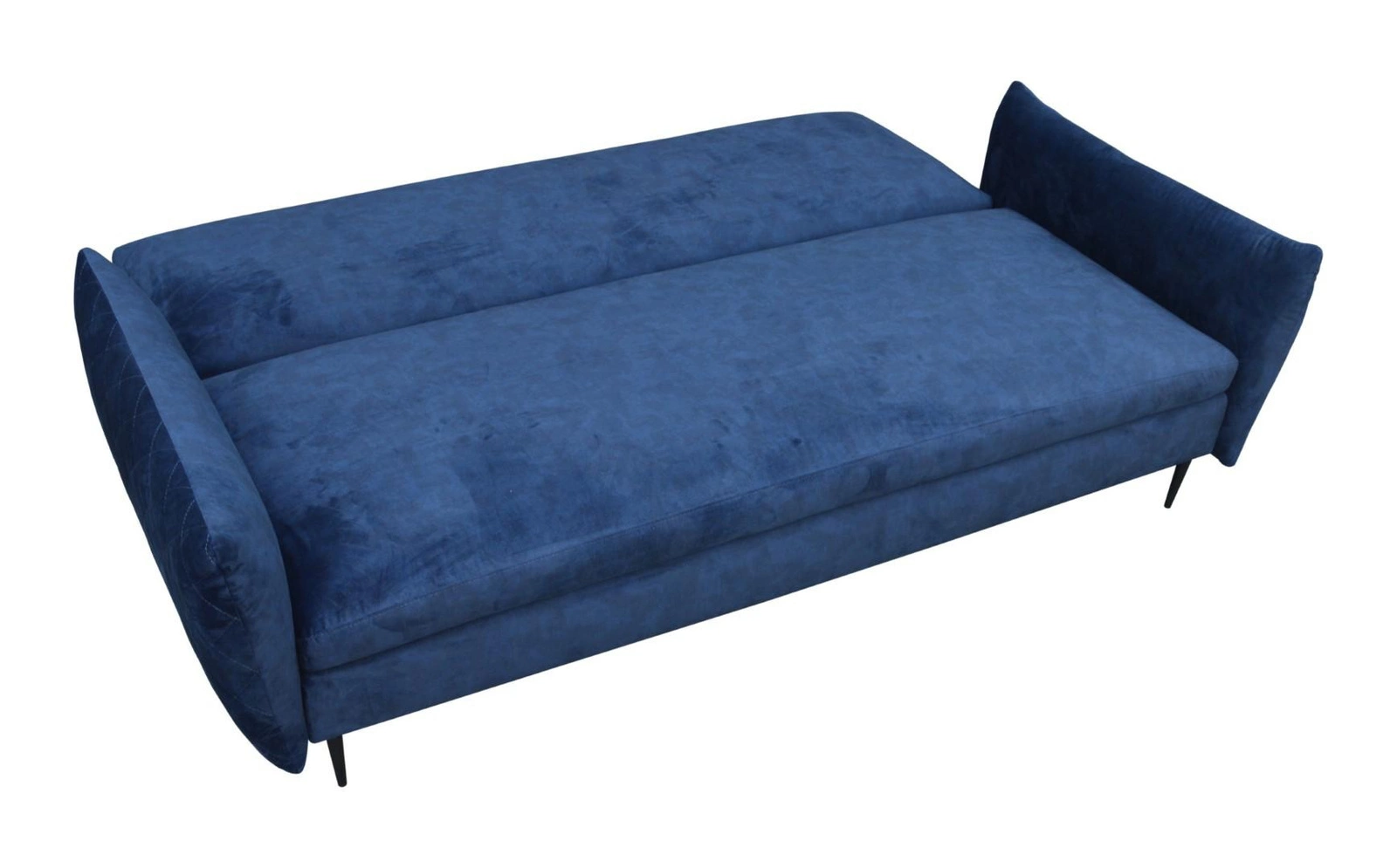 Rozkládací pohovka Cecile od značky Intesi je spojením skandinávského minimalismu, moderní funkčnosti a výrazné tmavě modré barvy. Čalouněná měkkou tkaninou vhodnou pro domácí mazlíčky, postavená na černých kovových nohách, nabízí spací plochu 140x190 cm a praktický úložný prostor na lůžkoviny. Díky šířce 224 cm a pohodlnému sedáku se Cecile stává srdcem každého obývacího pokoje, kde poskytuje komfort jak pro každodenní odpočinek, tak pro noční spánek.