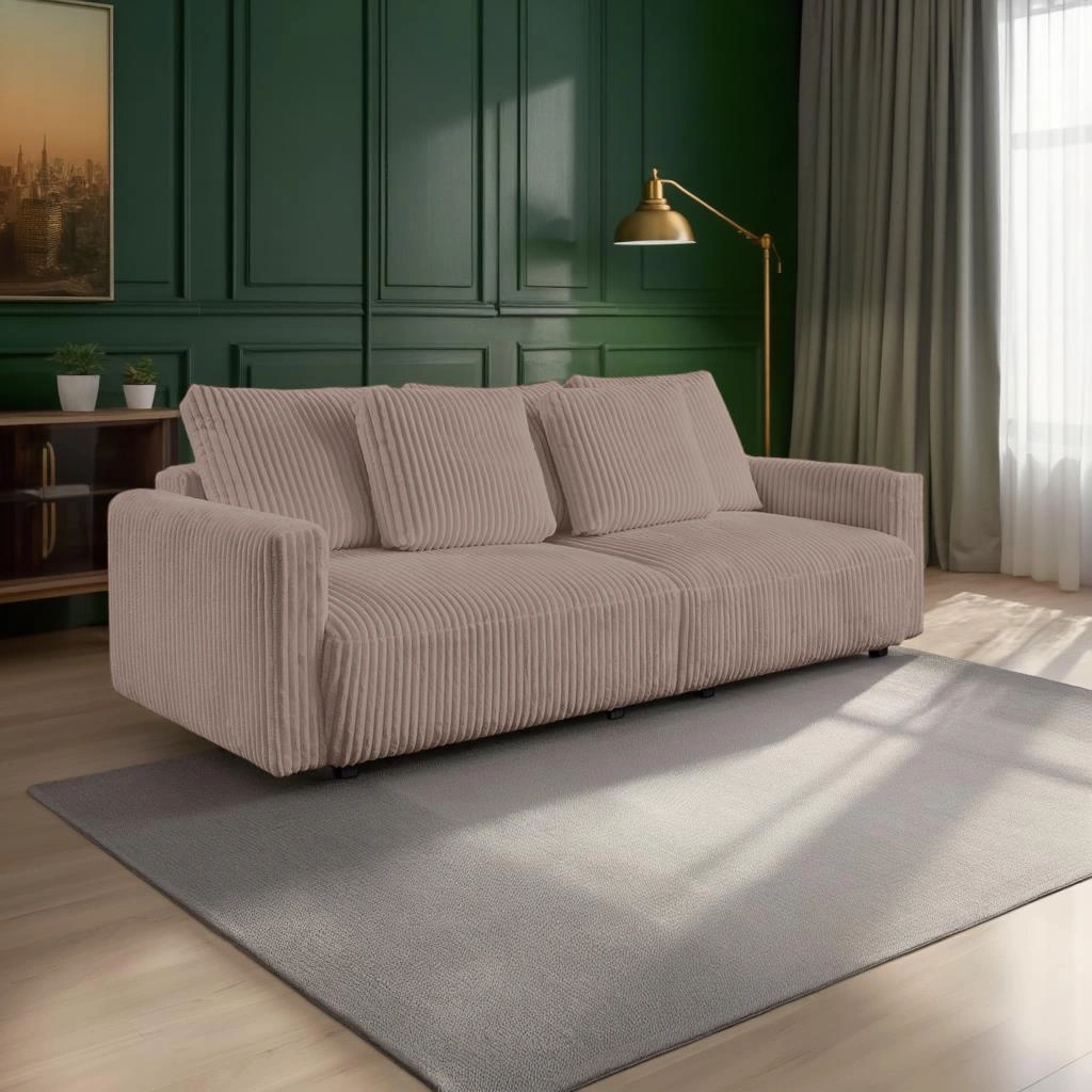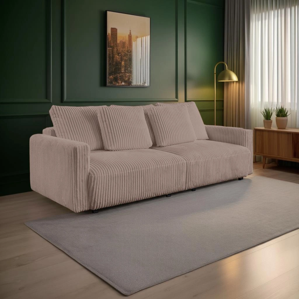 Rozkládací pohovka Loppie manšestrová s funkcí spaní do obýváku béžová moderní