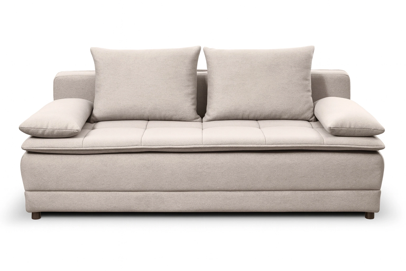 Máte rádi světlé, harmonické interiéry? Pohovka s rozkládací funkcí Mikkeli vnese do vašeho domova atmosféru moderní jednoduchosti a vzdušnosti. Jemný béžový odstín dokonale ladí s přirozeným světlem, opticky zvětšuje místnost a podtrhuje příjemnou domácí atmosféru. Typické detaily, jako jsou jemně tvarované područky a nenápadné béžové nožky, dodávají pohovce lehkost a zároveň odrážejí nadčasové trendy skandinávského stylu. Je to skvělá volba pro ty, kteří oceňují minimalistický styl a praktičnost v každodenním životě.