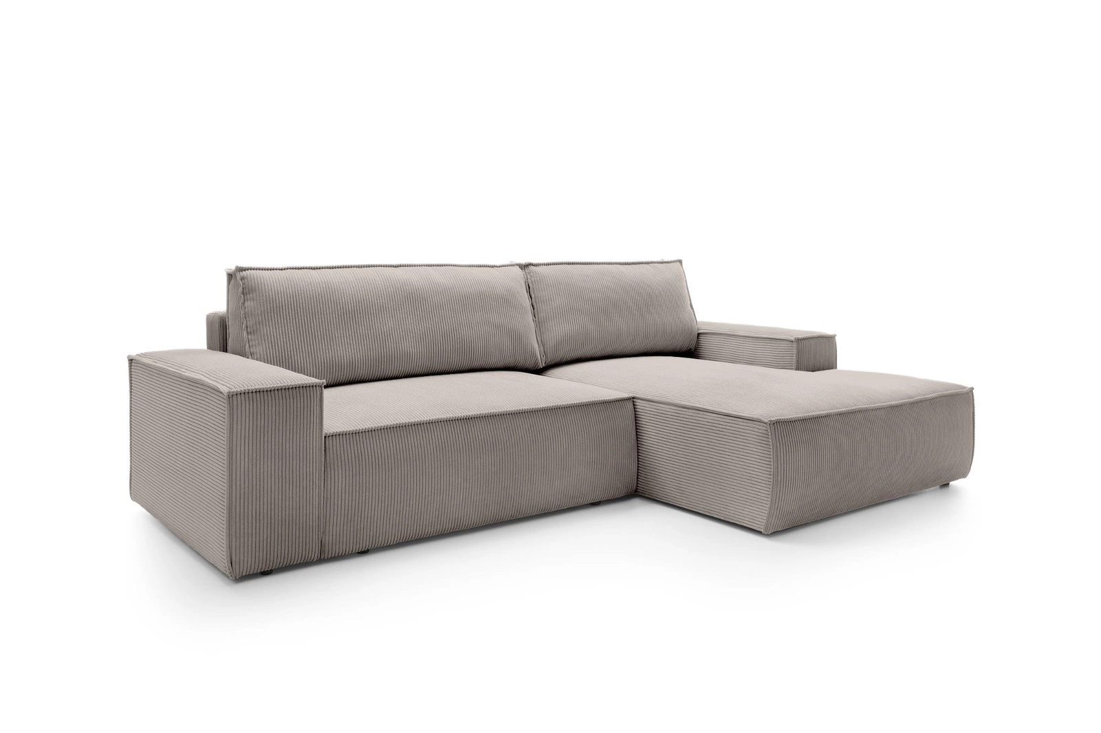 Pravý rohový gauč s rozkládací funkcí Molde M od značky Intesi je ideální volbou pro ty, kteří hledají stylové a praktické řešení do obývacího pokoje. Tento model spojuje moderní skandinávský design s pohodlím každodenního odpočinku. Měkká manšestrová látka v tmavě béžovém odstínu dodává rohové sedačce elegantní vzhled, zatímco její šířka 267 cm a plocha na spaní 210x135 cm zajišťují komfort jak při relaxaci, tak při přespání.