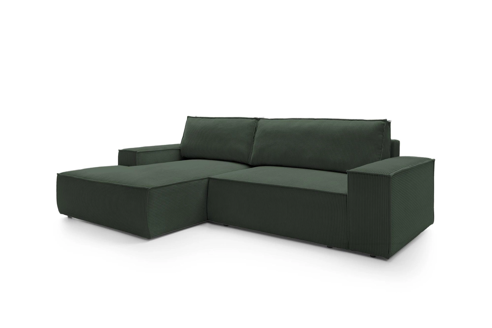 Šenilový rohový gauč s rozkládací funkcí Molde M levý zelený od značky Intesi je ideální volbou pro ty, kteří oceňují kombinaci pohodlí, stylu a praktických řešení ve svém obývacím pokoji. Tento model vyniká příjemnou šenilovou látkou v hlubokém zeleném odstínu, velkým úložným prostorem na lůžkoviny a rozkládací plochou o rozměrech 210×135 cm. Moderní tvar rohové sedací soupravy ve tvaru písmene L z ní dělá skvělý středobod každého obývacího pokoje.