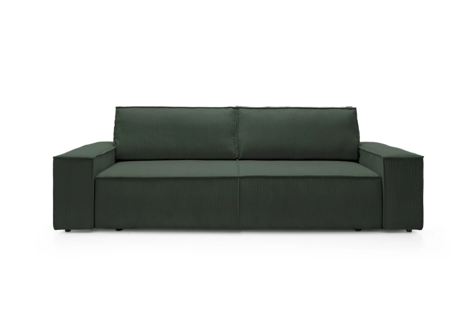 Pohovka Molde spojuje jednoduchost tvaru, měkký manšestrový potah a promyšlenou funkčnost. Její minimalistický design na černých nožkách perfektně zapadne do moderních i skandinávských interiérů, kde navodí pocit klidu a harmonie. Zelený manšestr je nejen příjemný na dotek, ale také snadno udržovatelný, což oceníte při každodenním používání.