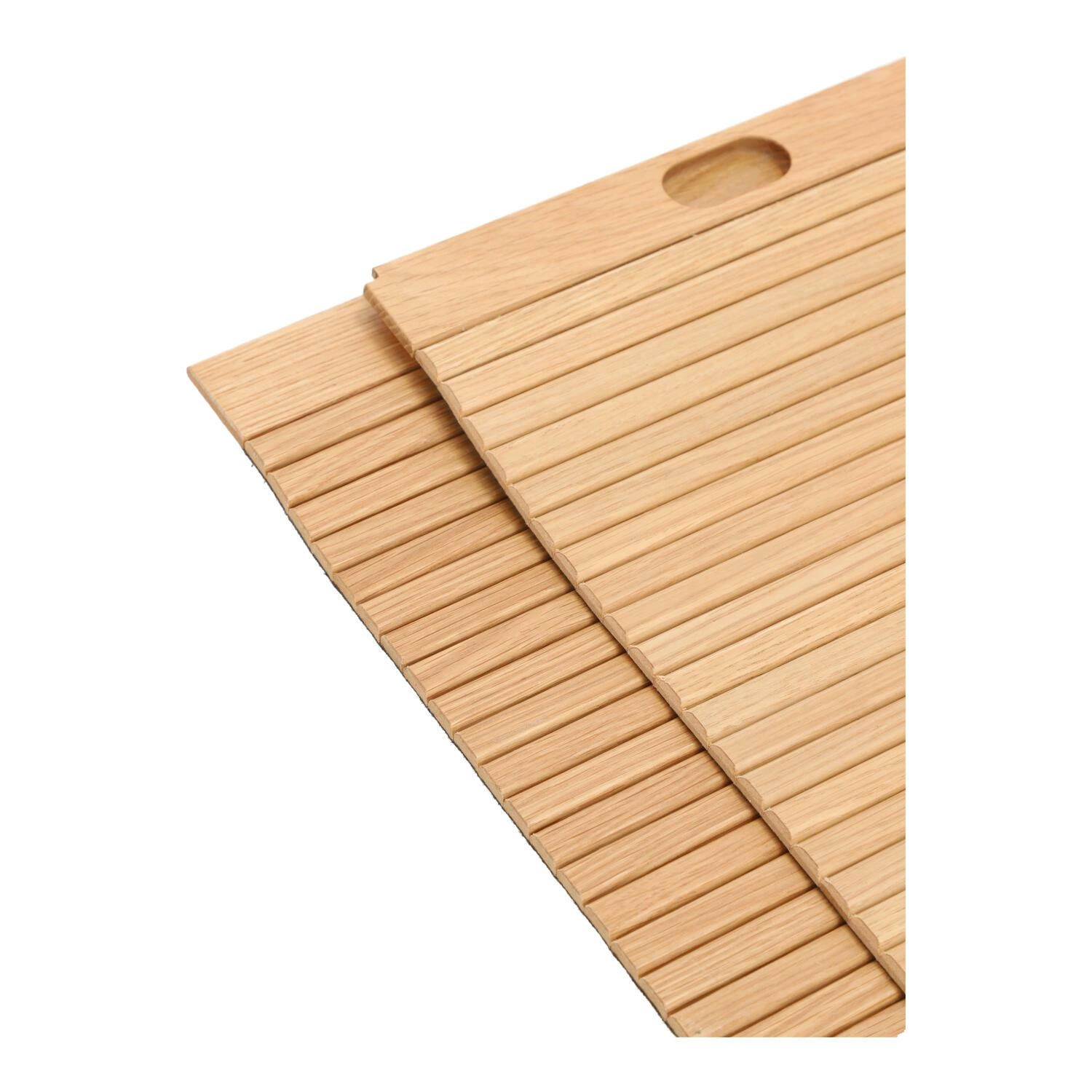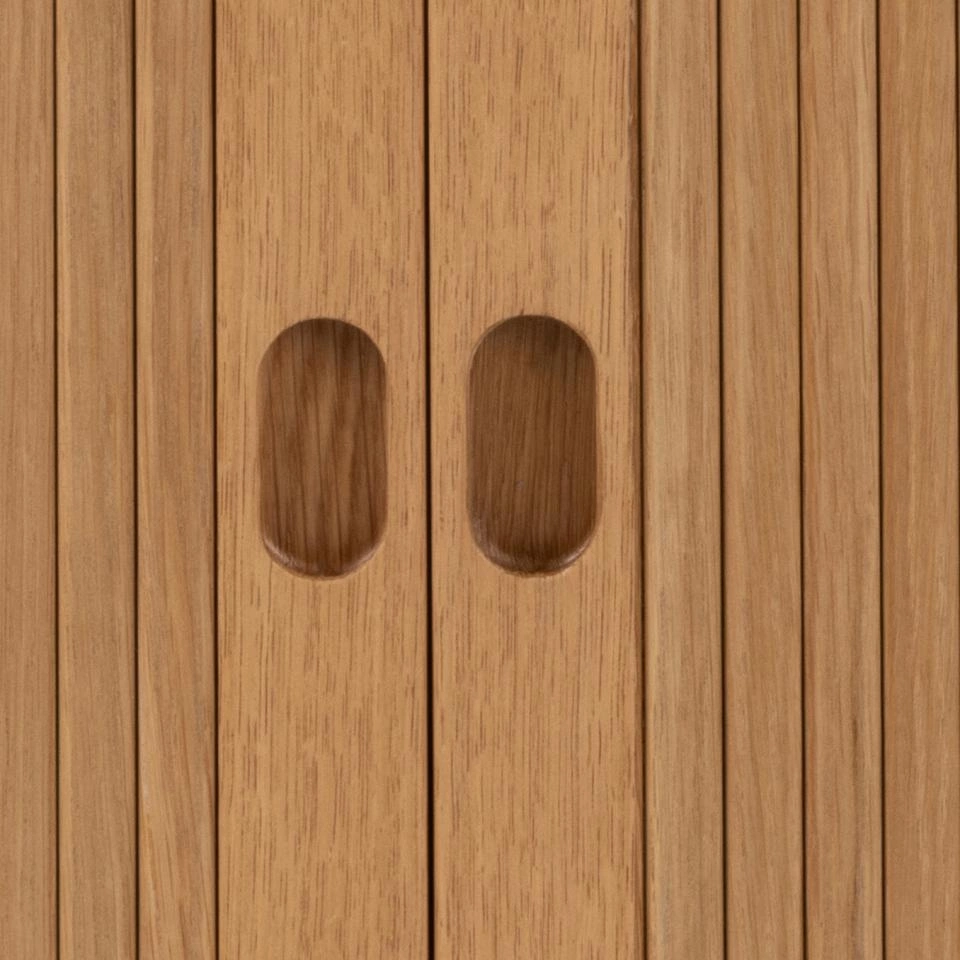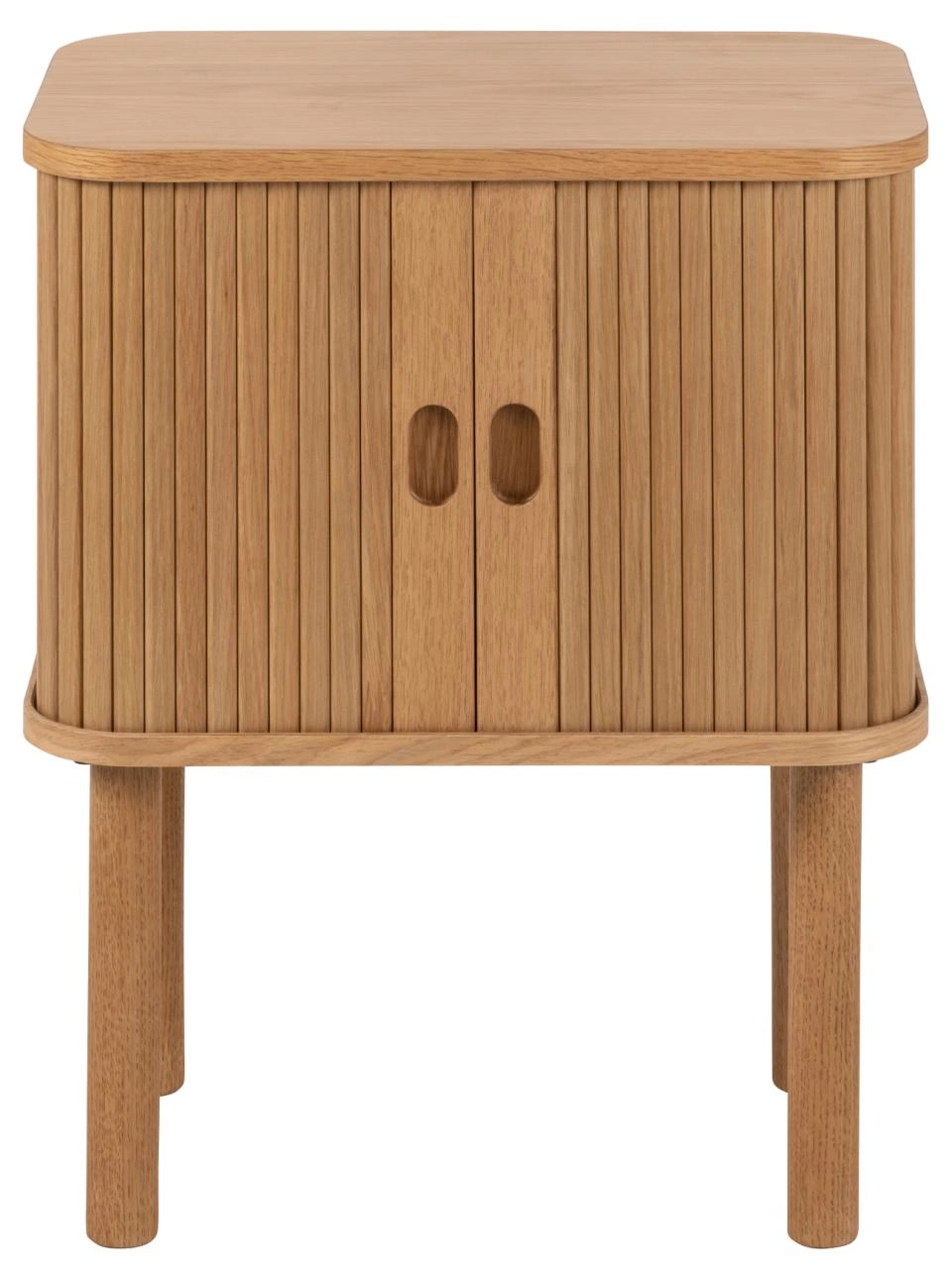 Vyzdobte si ložnici tímto dřevěným nočním stolkem. Stolek je vyroben v obdélníkovém tvaru se zaoblenými rohy a kombinuje moderní a přírodní estetiku, takže se hodí do různých stylů interiéru. Lamely, kulatý tvar a lakované dubové akcenty definují osobitý vzhled stolku. Čtvercový noční stolek Langley, deska z MDF a dubová dýha lakovaná PU, 2 dvířka z MDF a dubová dýha lakovaná NC, podnož z dubu lakovaného NC, s lamelovým čelem, posuvnými dvířky a žaluziovými dvířky. Vyžaduje montáž Vlastnosti výrobku: -dvířka v různých odstínech