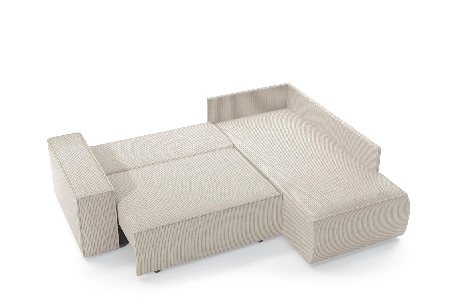 Rohová sedačka s rozkládací funkcí Molde L pravá se snadno promění v pohodlné lůžko o rozměru 200×135 cm – ideální jak pro příležitostné, tak každodenní spaní. Rozkládací mechanismus je hladký a nenáročný na obsluhu, zatímco skrytý úložný prostor na lůžkoviny pomáhá udržet pořádek bez kompromisů. Je to skvělá volba pro ty, kdo hledají praktický a moderní nábytek do obývacího pokoje.