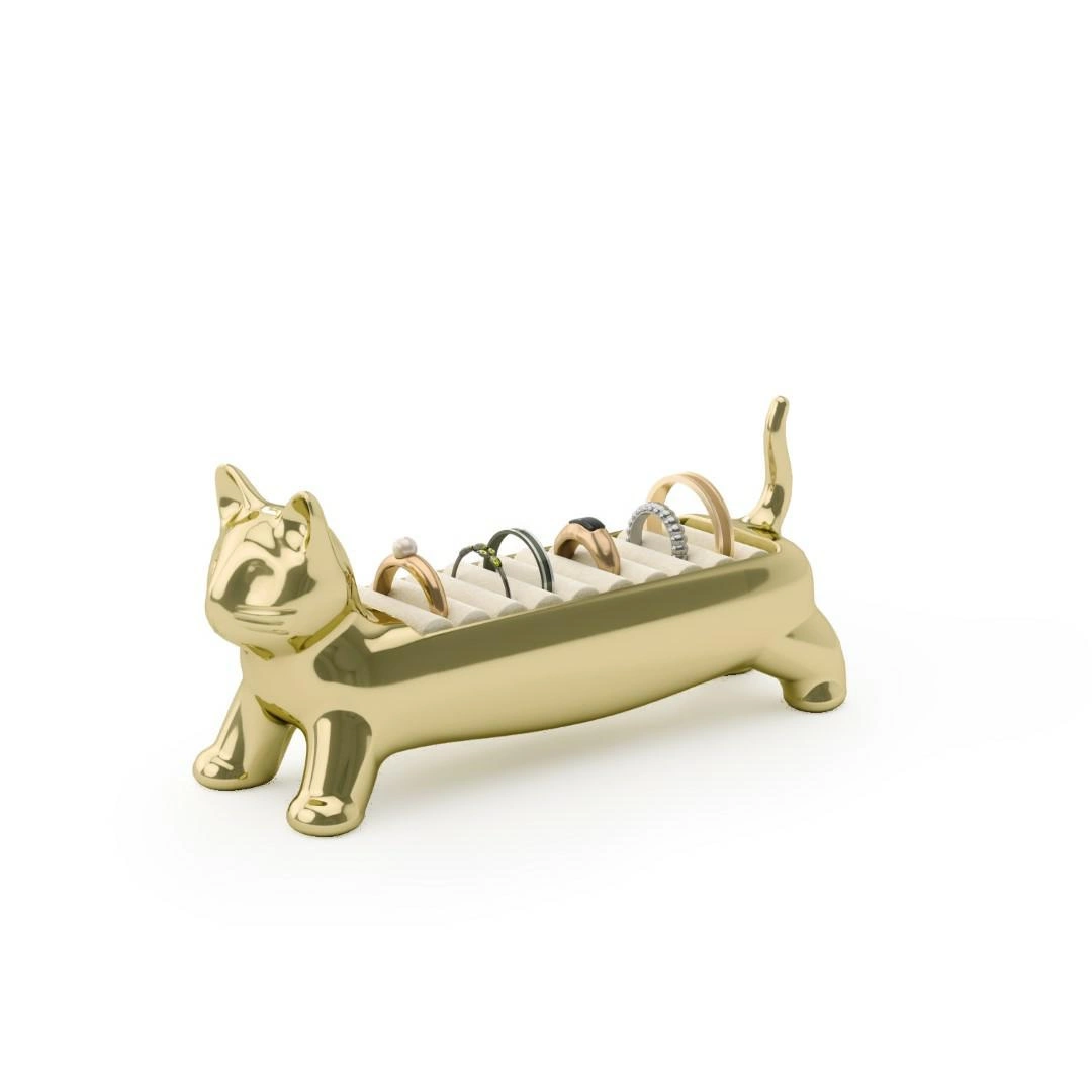 Umbra Ali Cat zlatý stojánek na prsteny sametový držák na šperky kočka