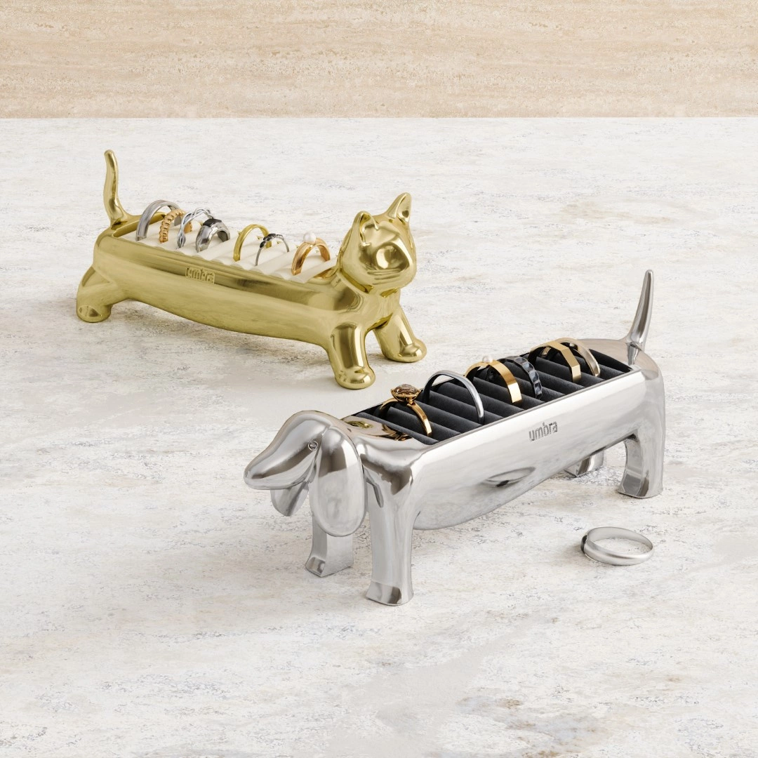 Stojánek a organizer na šperky Umbra Ali Cat je skvělým dárkem pro každého, kdo ocení přehledné uspořádání a originální bytové dekorace. Umožňuje pohodlné uložení prstenů na jednom místě a podtrhuje osobitý styl majitelky. Vyberte si organizer na prsteny, který vás nadchne estetikou i funkčností – a užívejte si každodenní komfort krásně uspořádaných šperků!