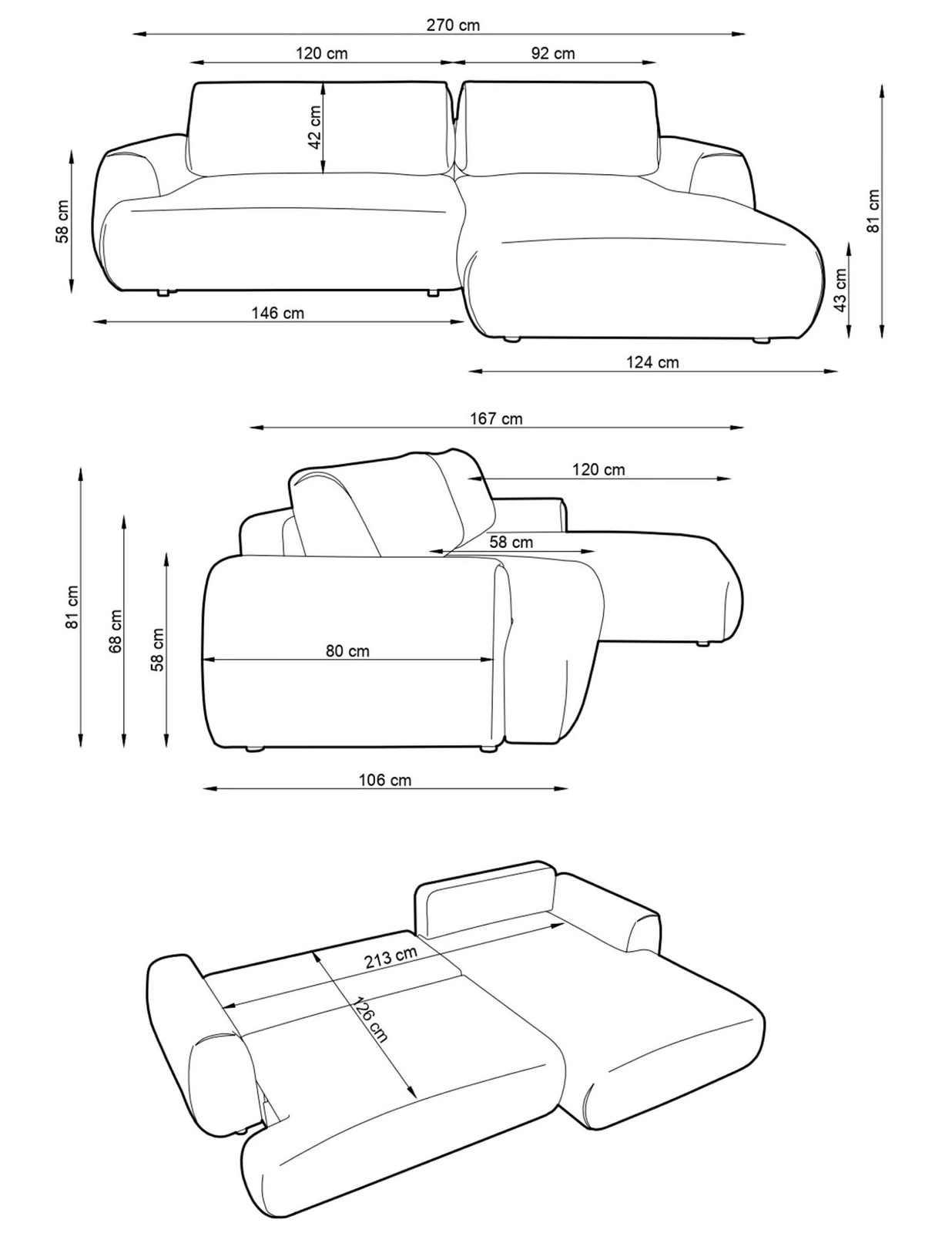 Je nejen funkční, ale také pohodlná. Hloubka sedáku je 58 cm, což zaručuje pohodlí při odpočinku. Lehátko s hloubkou 120 cm je ideálním místem pro odpočinek po náročném dni. Spací plocha o rozměrech 213x130 cm zajistí pohodlný spánek nečekaným hostům.