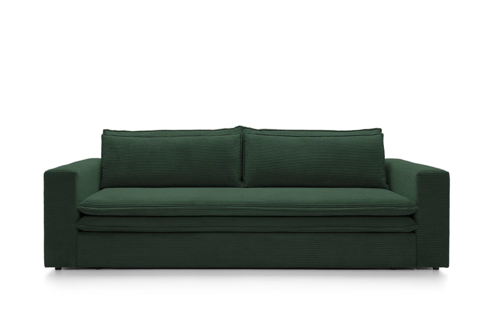 Jedinečná rozkládací pohovka Ulnes vyniká sytě zeleným odstínem a měkkým manšestrovým čalouněním, které je příjemné na dotek a dodává interiéru útulnou atmosféru. Jednoduchý tvar, štíhlé područky a černé, nenápadné nožky podtrhují moderní styl – pohovka tak skvěle zapadne jak do minimalistického, tak do klasičtějšího obývacího pokoje. Sametový povrch látky nejen zvyšuje estetickou hodnotu, ale zároveň se snadno udržuje v čistotě, což zajistí, že pohovka bude dlouho vypadat jako nová.