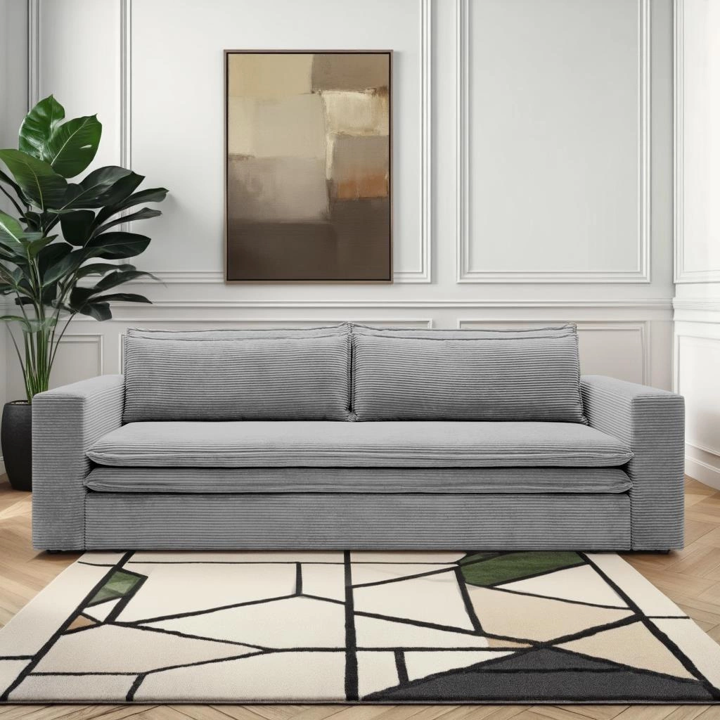 Rozkládací pohovka Ulnes od značky Intesi je spojením moderního pohodlí a funkčnosti v elegantním, světle šedém provedení. Tento třímístný model je vyrobený z měkké, manšestrové látky s příjemně sametovým povrchem, která přímo vybízí k relaxaci. Díky mechanismu Klik-Klak se Ulnes během chvilky promění v pohodlnou rozkládací pohovku s plochou na spaní o rozměrech 200x140 cm – ideální pro každodenní odpočinek nebo přespání hostů. Praktický úložný prostor na lůžkoviny a snímatelné polštáře podtrhují její funkční charakter, což z této rozkládací pohovky činí skvělou volbu do moderního obývacího pokoje.