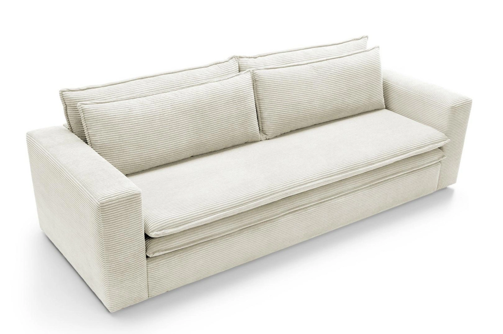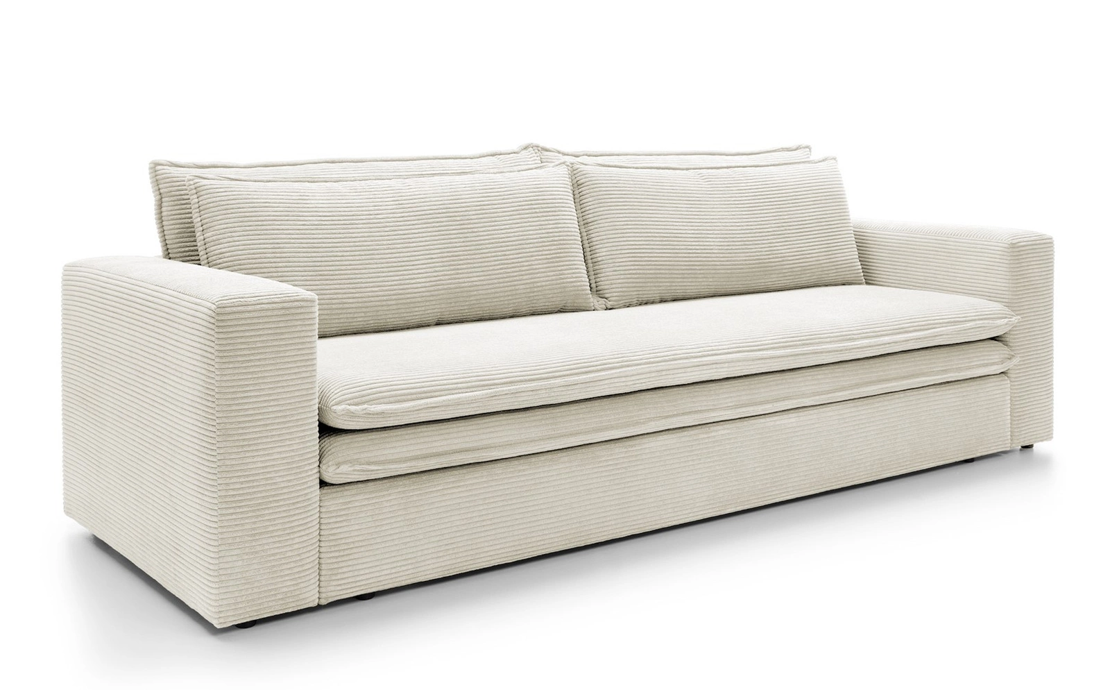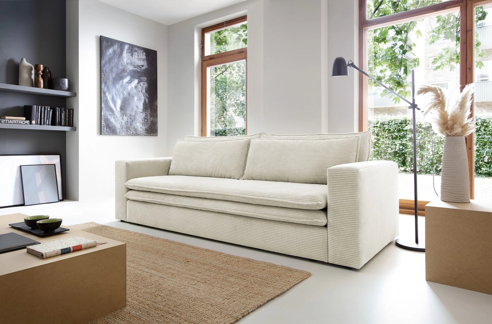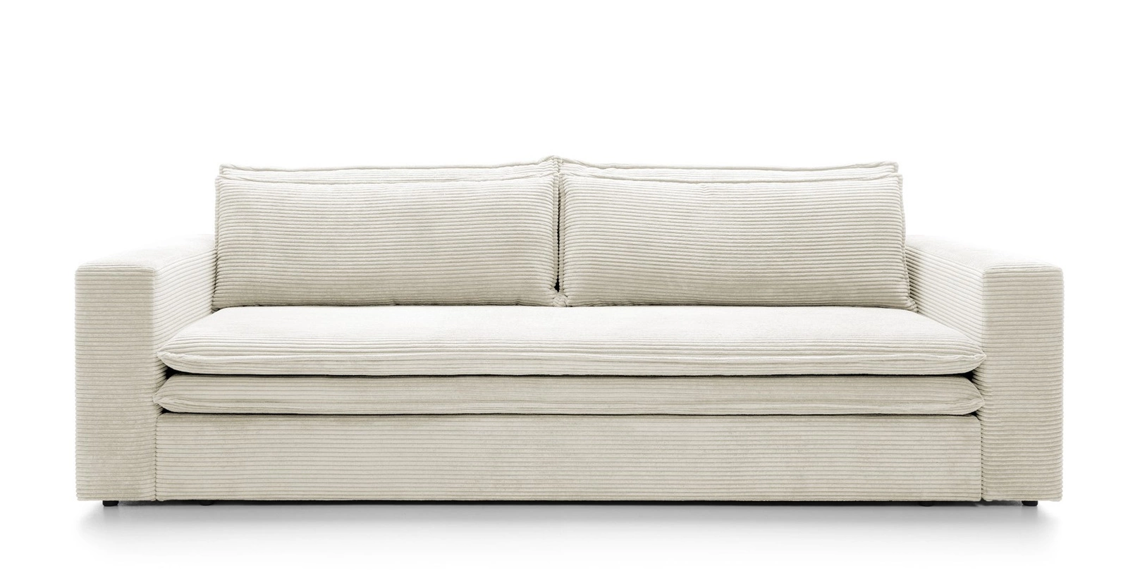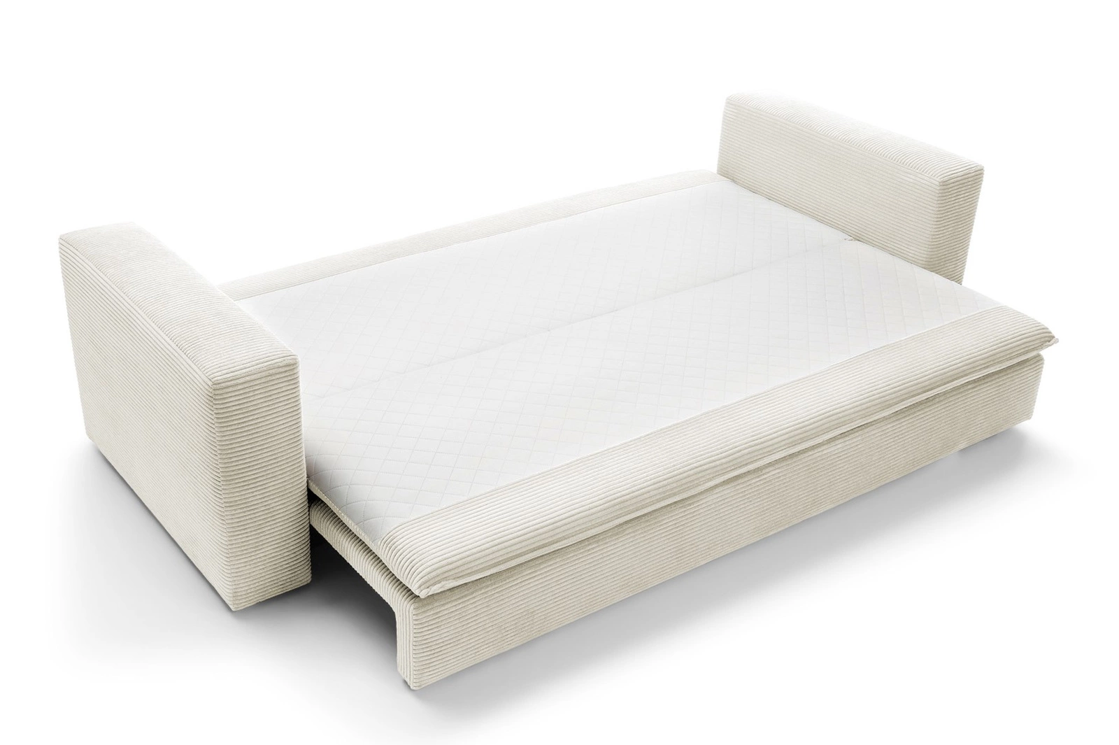 Rozkládací pohovka s funkcí spaní Ulnes od značky Intesi je třímístná, bílá pohovka ze sametového manšestru, navržená pro moderní a skandinávské interiéry obývacích pokojů a salonů. Nabízí prostornou ložnou plochu 200×140 cm, pohodlné sedadlo ve výšce 43 cm a praktický úložný prostor na lůžkoviny, který pomáhá udržet pořádek každý den. Sametové manšestrové čalounění poskytuje výjimečnou měkkost a jedinečný vzhled, zatímco stabilní černá základna na čtyřech nohách podtrhuje její lehký, moderní styl.